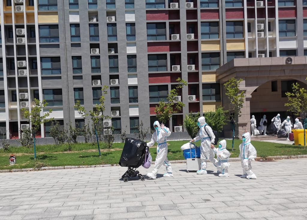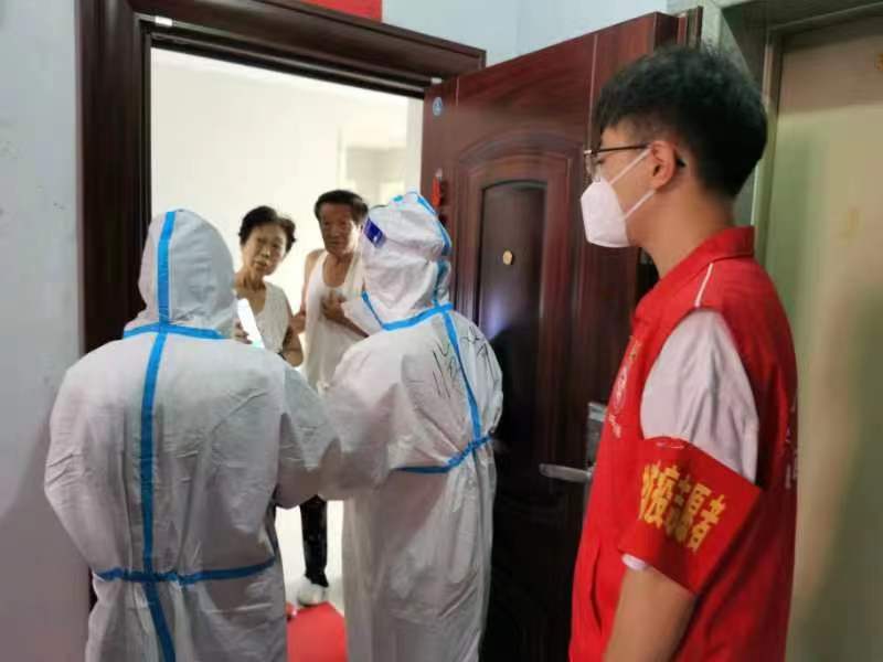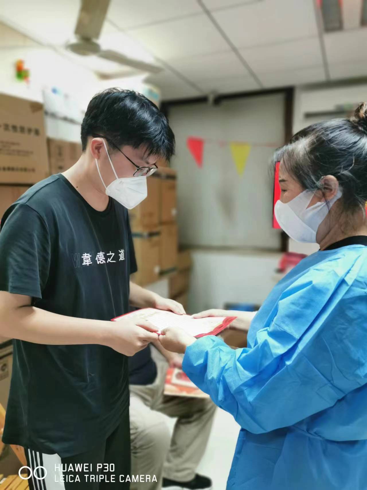 郭森同学一家三口都是共产党员,他的父母常说一句话:守住“大家”才能护住“小家”。他们用实际行动践行着共产党员的初心使命,坚守在抗击疫情的第一线。郭森母亲是运城市第一时间志愿者协会的秘书长,响应国家号召并组织人员投入到疫情防控工作中,郭森同学一家三口也迅速投入到战斗中。每天早晨五点天没亮就准备就绪,开始五六个小时的工作,协助医护人员进行消杀和扫码、提醒居民在规定时间内完成核酸检测并跟随医护人员对社区行动不便的居民上门服务。天气炎热,来回走动、爬楼,衣服被汗水浸湿,医护手套里满是水珠,手被汗水泡地发白。志愿者们无私奉献,看到核酸检测工作安全有序、顺畅高效,大家都无怨无悔。
