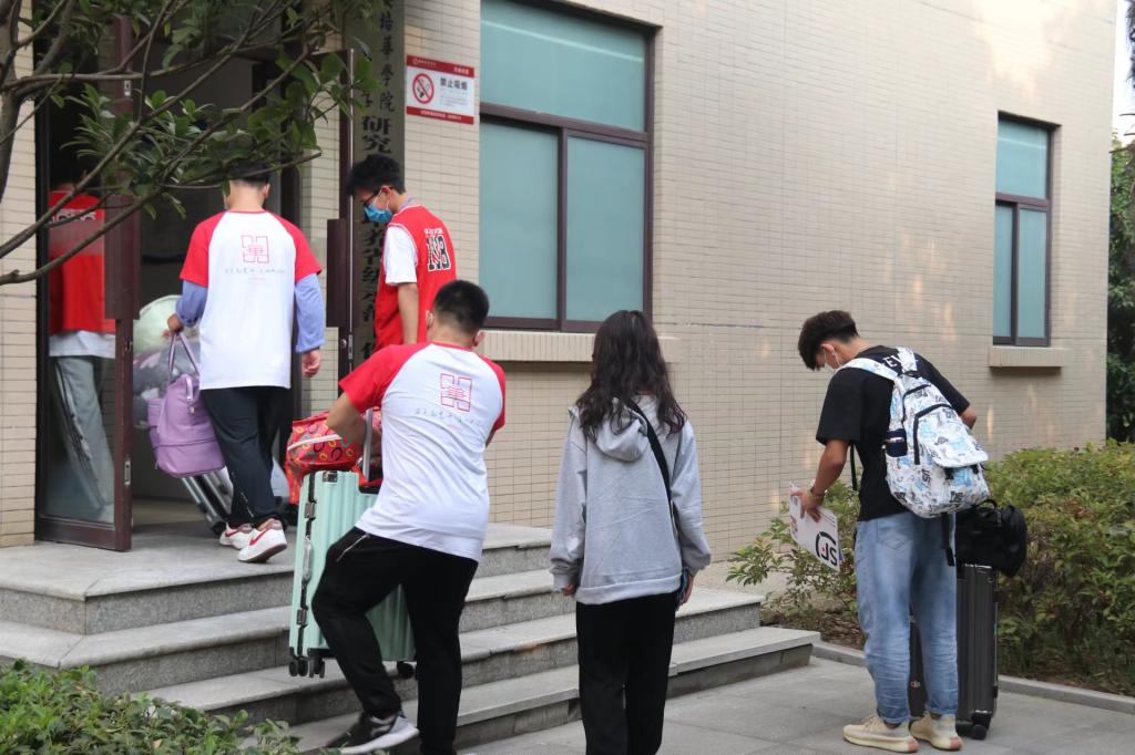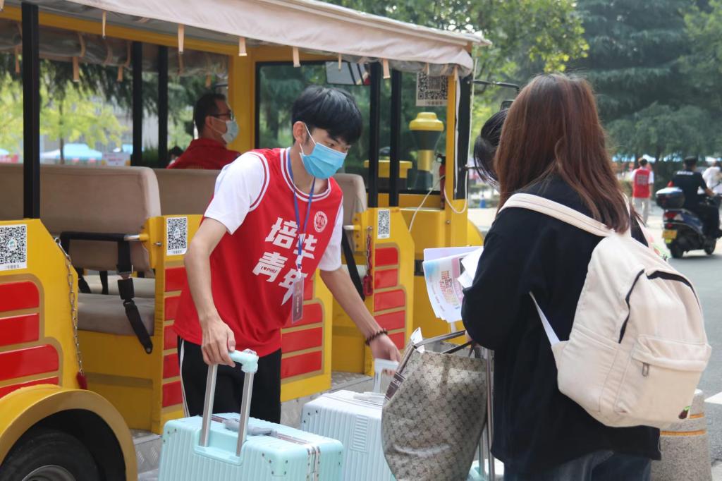 清晨,团委、学生会、青年志愿者协会和其他学生志愿者们早早来到迎新地点进行布置,半个小时后迎新队伍便以全部就绪。他们有的在学院报道点辛苦的举着院旗接应、有的在接待处耐心地接受新同学的咨询、有的微笑着为学弟学妹们办理入学手续。学长学姐们主动帮着拎行李,熟悉我们的校园,一路谈笑风生。人头攒动,秩序井然。