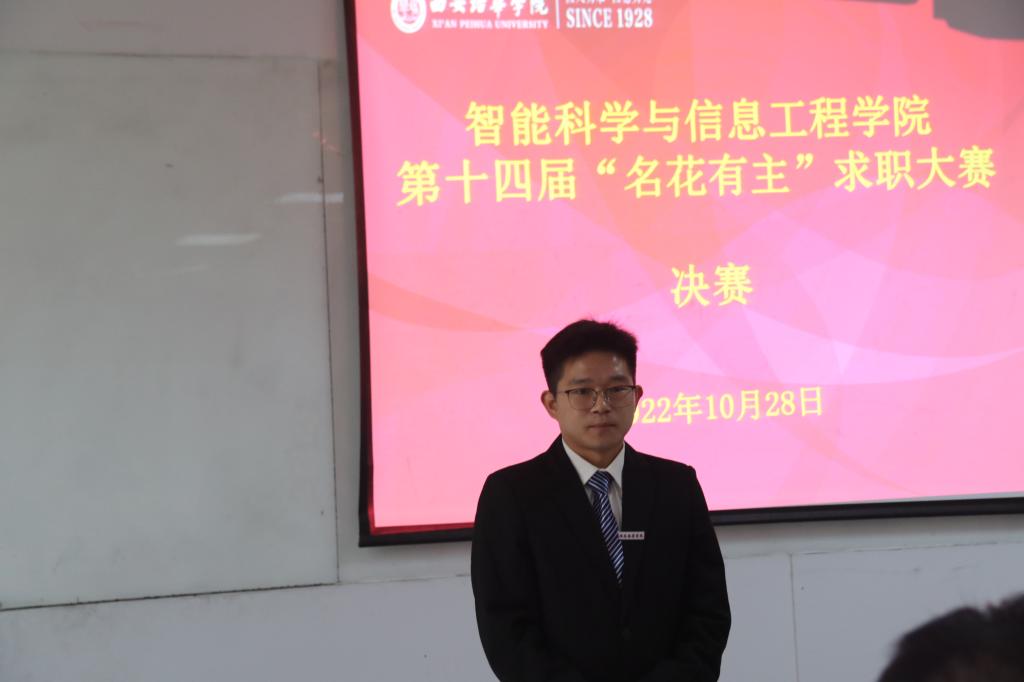 2022年10月28日,智能科学与信息工程学院“名花有主”求职大赛决赛在3215教室举行,担任本次比赛的评委是智能科学与信息工程学院党总支书记兼行政副院长王林;党总支副书记王伟平老师;学生干事、学生第一支部书记杨桂锋老师;党务行政干事孙晓微老师;招生与就业指导中心就业办公室主管崔佳雯老师;招生与就业指导老师王再翘老师。
