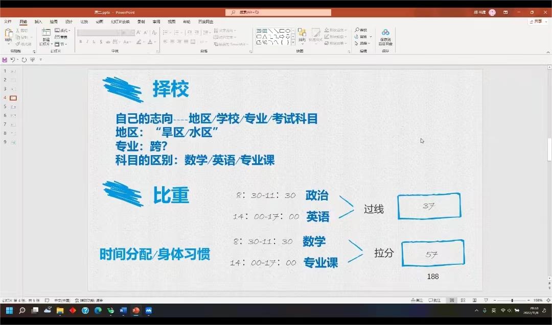 首先,2022级西安建筑科技大学计算机科学与技术专业研究生张贾辉学长分享自己各科的学习与复习方法。他从英语、政治、数学和专业课程入手,向大家具体分享了自己平时的时间管理和规划。张贾辉学长强调,同学们应学会主动学习,并懂得充分利用学校图书馆、数据库等各种优质资源高效学习。