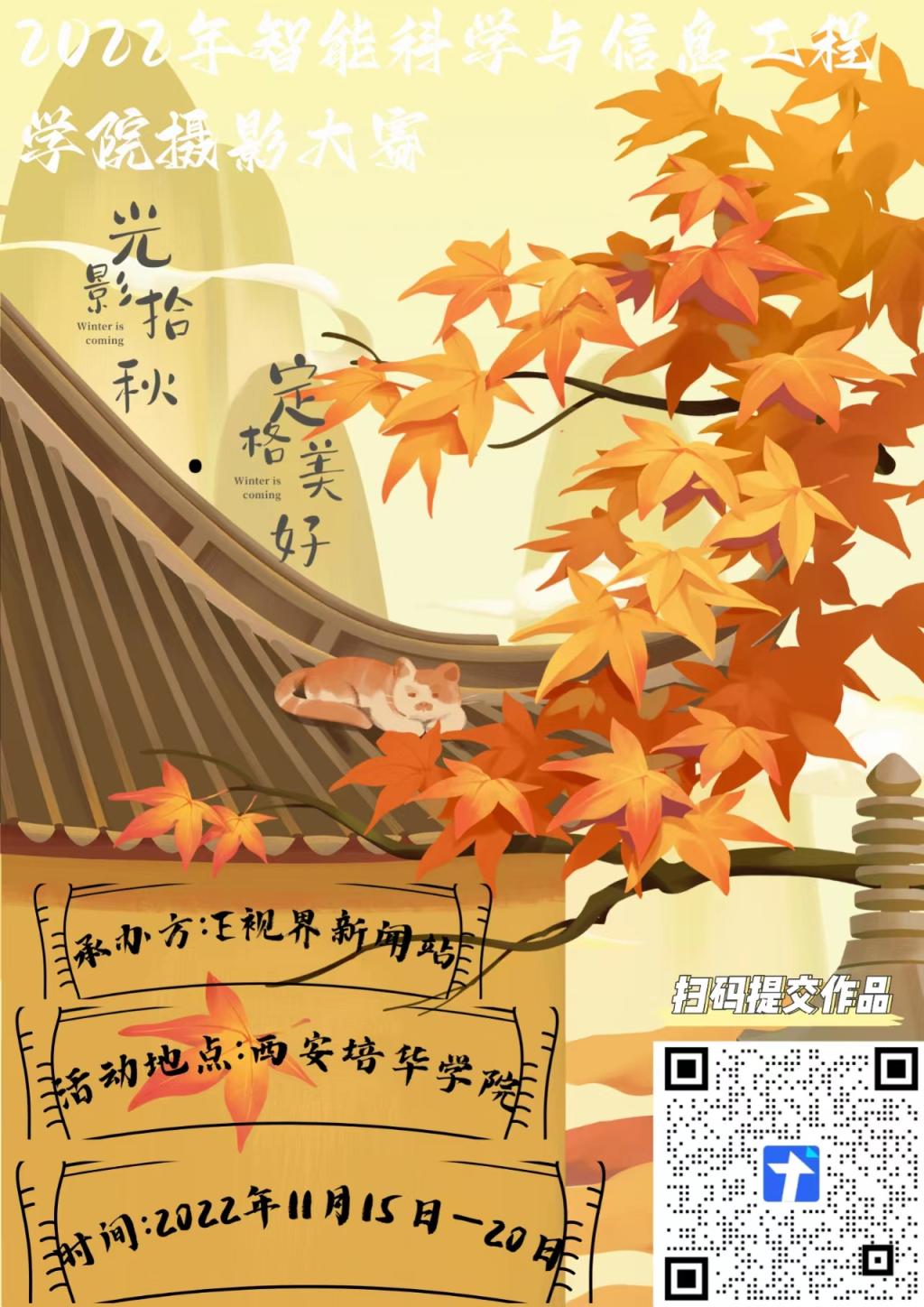 以“光影拾秋·定格美好”为主题,充分展现优美的校园风光,积极向上、蓬勃发展的精神文化氛围,展现我院优良的学习和工作环境,内容健康积极。