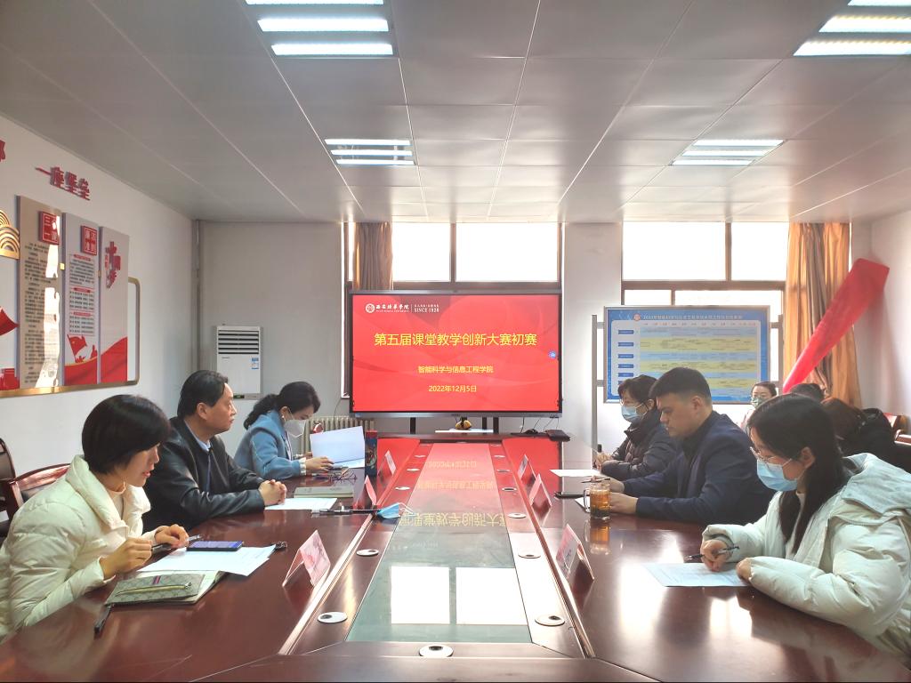 为贯彻全国教育大会精神,坚持立德树人根本任务,落实“以本为本、四个回归”的要求,深入推进新工科、新农科、新医科、新文科建设,推动信息技术与教育教学融合创新发展,不断激发高校课堂教学活力,智能科学与信息工程学院于2022年12月5日在院会议室举办“第五届课堂教学创新大赛初赛”。院长程国建、常务副院长成立、院长助理毛莉君以及各系主任、专业带头人,教师代表参与了此次活动,院长助理毛莉君担任主持。