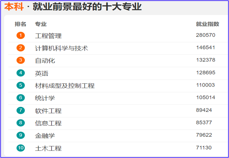 近年来,我国信息化社会和新经济、新产业发展对计算机专业人才产生了巨大需求。计算机科学与技术专业的就业前景持续向好,是就业前景最好的十大专业之一。最新统计数据显示,在1054个本科专业中,本专业的就业排名位居第三。本专业的薪酬收入在近几年本科专业排名中也位居前列。