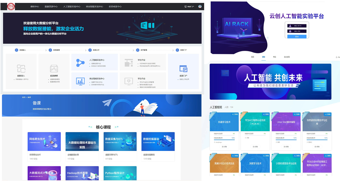 Web前端项目综合实训、软件项目综合实训、大数据分析项目综合实训等。