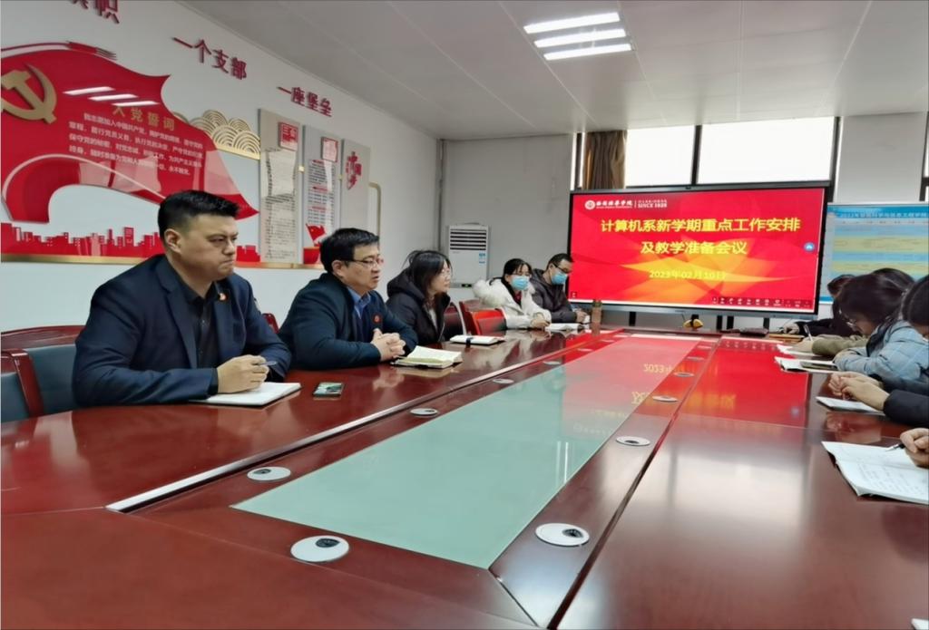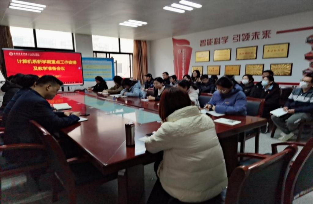 为了做好本学期迎评工作和新学期教学规划,2023年2月10日中午,智能科学与信息工程学院计算机系在院会议室召开新学期重点工作安排及教学准备会议,会议由计算机系主任焦纯主持,计算机系全体教师参加了本次会议。