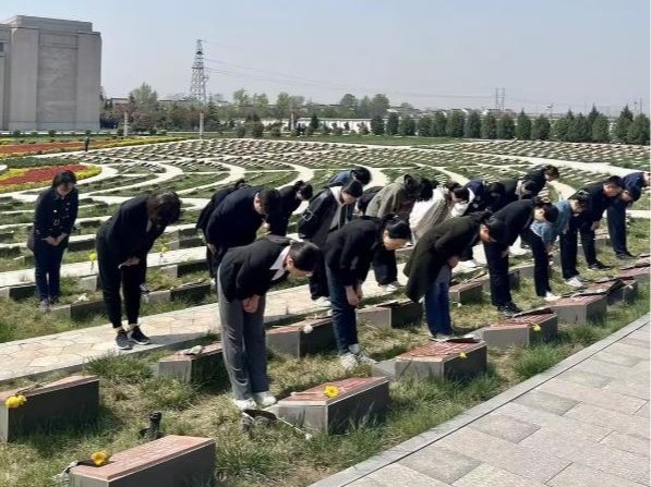 在扶眉战役之中,中国人民解放军歼灭国民党4个军6个师和另外6个团,共计4.3万余人,解放宝鸡和九个县城,为解放大西北和大西南奠定了基础。然而,中国人民解放军也有很多伤亡,在扶眉战役纪念馆后方的烈士墓园安葬了3000多名指战员,其中,有姓名的烈士2160名,还有1000多无名烈士。教工党员们怀着沉重的心情来到烈士陵园,鞠躬默哀,并向革命先烈敬献鲜花,缅怀革命烈士的丰功伟绩,深切寄托对革命先烈的无限哀思和沉痛悼念。教工党员还朗诵了诗歌,以表达对革命先烈们的崇高敬意。