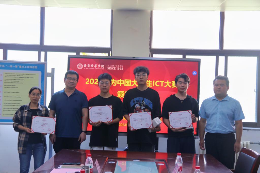 在学院领导的大力支持、精心组织,以及参赛选手的奋勇拼搏下,我校在本届华为ICT大赛实践赛计算赛道的比赛中,取得了突破性的成绩,最终获得陕西省一等奖1项,陕西省三等奖1项,全国三等奖1项。随后,毛莉君助理宣布获奖名单,并开始颁奖。