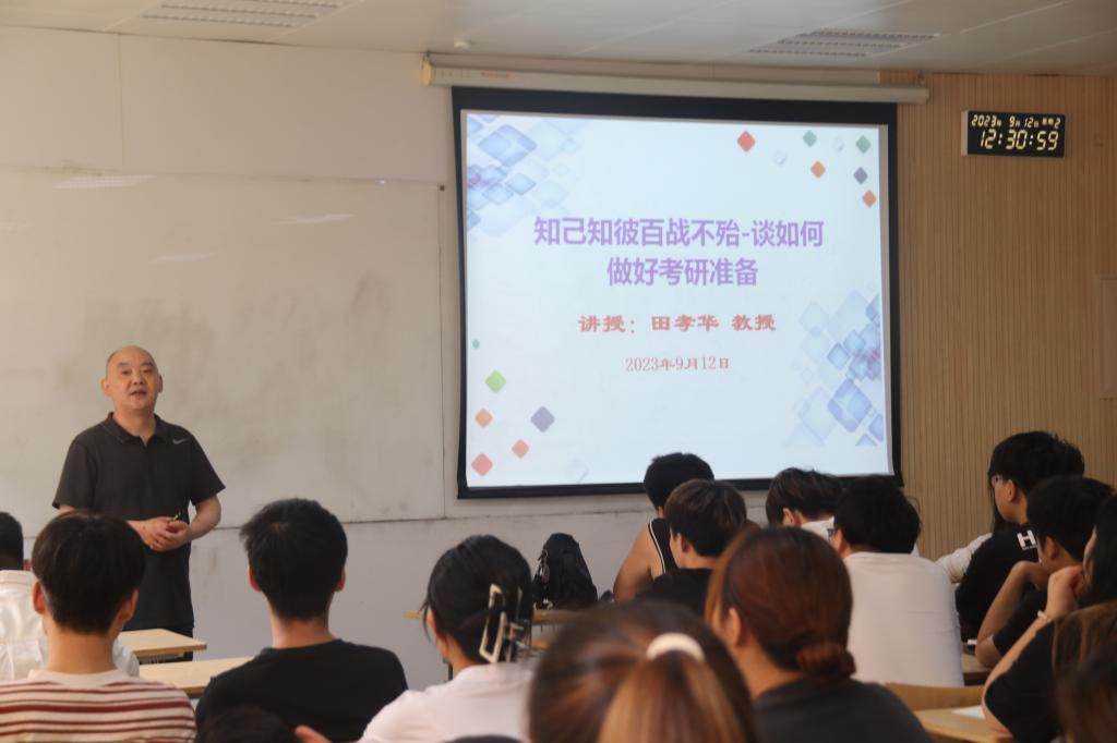 为进一步提升我院学生的考研积极性,帮助同学们明确考研目标,了解考研形势、优化考研择校、了解专业前沿动态,我院在育英楼举办2024届考研动员及分享会,此次会议由我院教学副院长田孝华主持。
