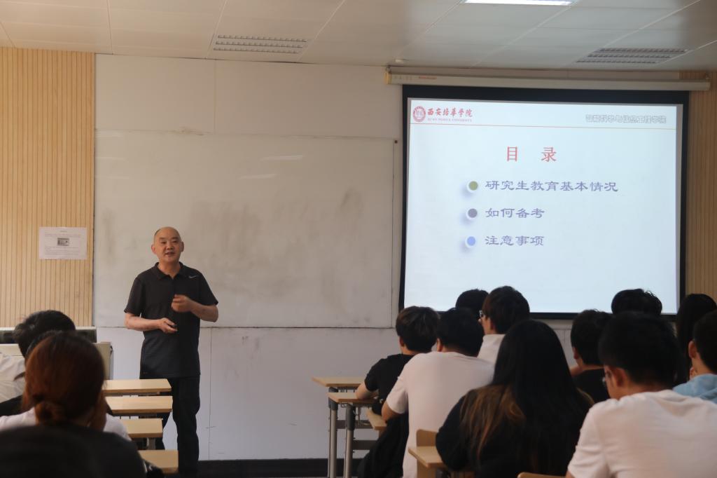 伴随着耳熟能详的谚语,田孝华副院长将为我们讲述关于“如何做好考研准备”的分享。他从如何做好考研备考的角度出发,分别就研究生教育的基本情况、如何备考以及注意事项等方面向同学们传授经验,并强调同学们要正视压力,在备考过程中做好心理建设,以轻松的心态、积极的态度面对考研。他强调,作为准备考研的学子,每位同学们应结合自身实际情况自主选择院校,根据自身情况来确定合适的复习方案,在备考过程中提升自我。