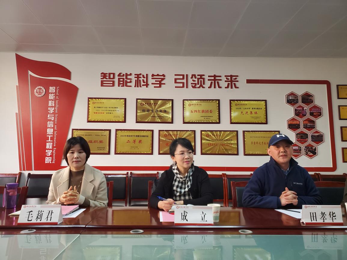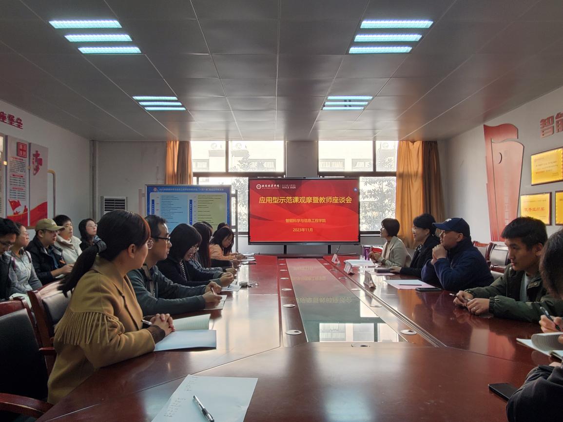 为加强教师队伍建设,持续深化应用型课程改革,加深我院教师对应用型课程的认识,进一步将已经基本形成体系的应用型课程改革落到实处,推进审核评估整改工作顺利进行,2023年11月24日中午,智能科学与信息工程学院在3204会议室召开应用型示范课观摩暨教师座谈会。学院常务副院长成立、教学副院长田孝华、院长助理毛莉君以及全体教师参加此次活动,座谈会由院长助理毛莉君主持。