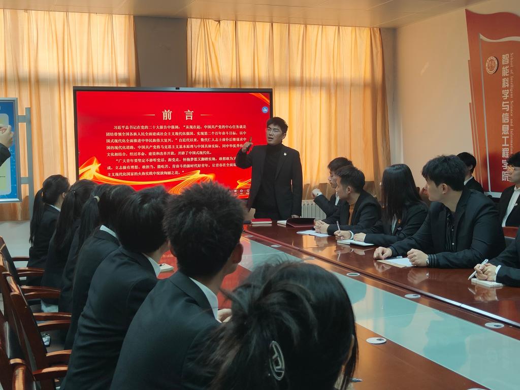 为深刻领会习近平新时代中国特色社会主义思想精神要义,2023年12月4日中午,学院党总支书记兼行政副院长王林在院党员活动室讲授了题为“新时代青年以青春助力中国式现代化”的主题党课,我院本学期党员发展对象全体成员参加了本次党课学习。