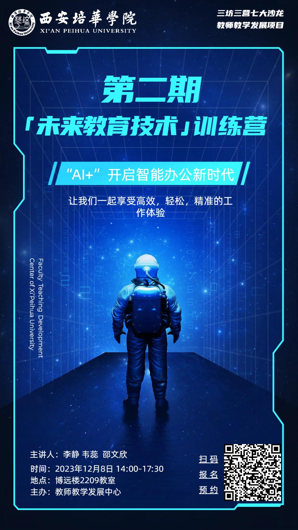 12月8日,由教师教学发展中心主办、智能科学与信息工程学院计算机基础教研室承办的西安培华学院第二期“未来教育技术训练营”在格物楼1311教室进行。该训练营旨在探索AI新技术在办公场景中的应用,以及带领老师们利用AI工具一起享受高效、轻松、精准的工作体验。我院院长助理毛莉君、基础教研室主任万卷及学院教师代表和教师发展中心老师代表参加了本次训练营。