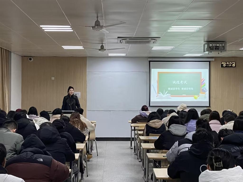 在本次主题班会中,各班辅导员带领全体学生进一步学习了《学生手册》相关规定。通过介绍以往线上作弊受到纪律处分的案例,使同学们深刻认识到违反考试纪律应承担的责任和严重后果,并引以为戒。同时,针对思想压力大的学生,辅导员们加强了心理指导,帮助他们克服考试焦虑情绪,树立信心,以良好心态迎接期末考试。