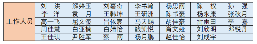 2023年12月21日晚,西安培华学院智能科学与信息工程学院在大学生活动中心中举办了 “智信庆新元 龙腾谱新篇”2024元旦晚会暨格物学生社区联欢晚会。本次晚会的圆满完成,离不开所有演员、工作人员、观众以及各位领导老师的付出与支持。为此,共青团西安培华学院智能科学与信息工程学院委员会决定对本次晚会表现突出的演职人员和工作人员进行公开表彰。表彰名单如下: