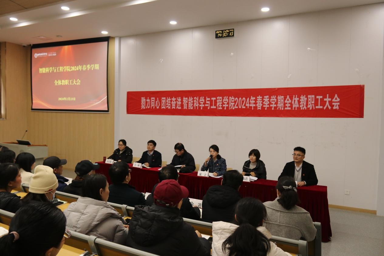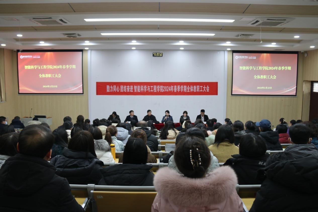 为进一步明确新学期的教育教学目标,扎实做好各项准备工作,2024年2月23日智能科学与工程学院召开2024年春季学期全体教职工大会,学院全体教职工参与了此次会议,会议由常务副院长成立主持。