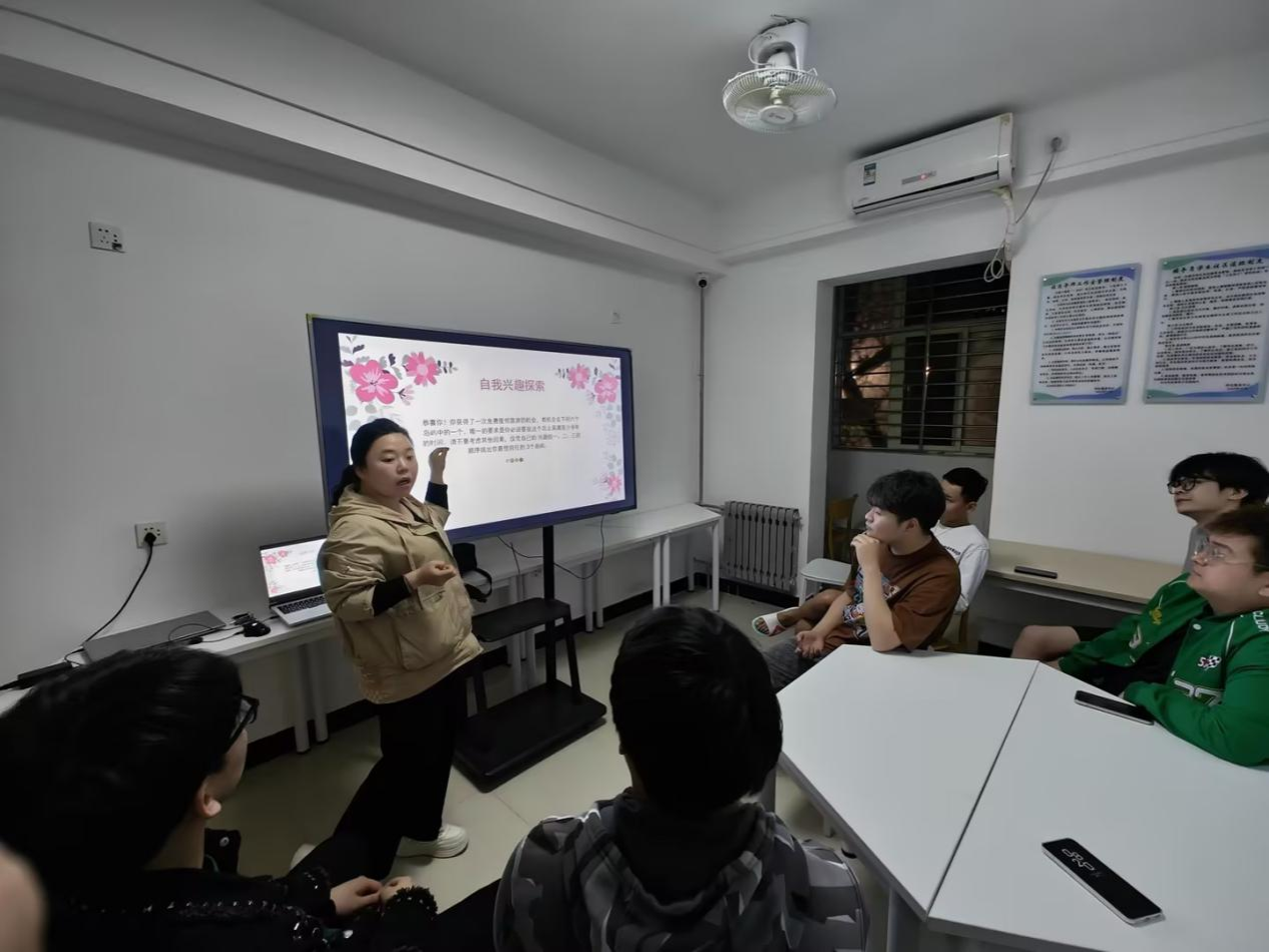 本次活动由辅导员邢杨主持,18号公寓同学积极参与。在活动中,邢老师强调自我探索对于个人素养和职业发展的重要性。通过多个小游戏,引导同学们积极的感受自我的内心,了解自己的兴趣,积极规划自己未来的职业发展方向。