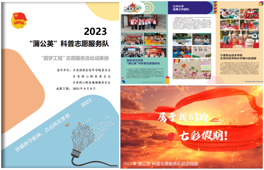 2023年7月,“蒲公英”可科普志愿服务队入选成为2023年“圆梦工程”志愿服务示范团队;