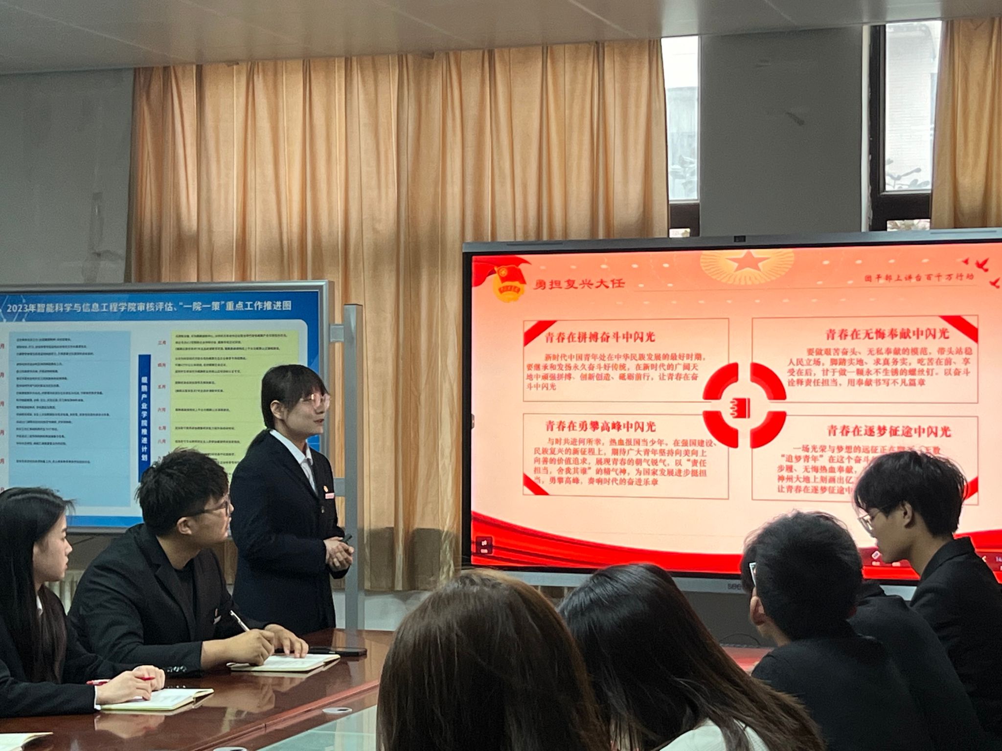 为深入开展学习贯彻习近平新时代中国特色社会主义思想主题教育,贯彻落实党的二十大精神,不断提升我院团干部思想政治工作的理论水平、专业素养和工作能力,激发团组织内生动力,培养有理想、敢担当、能吃苦、肯奋斗的新时代好青年,2024年4月8日,智能科学与工程学院团委组织开展“团干部上讲台百千万行动” 系列团员青年教育培训会。