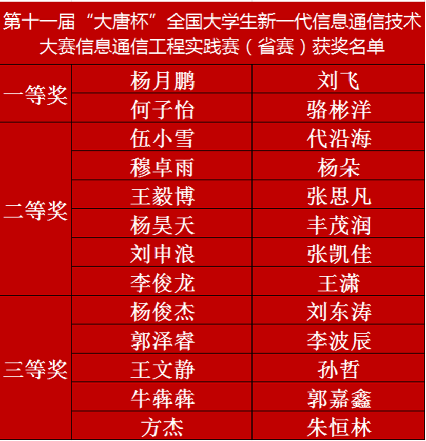 在本次省赛中,我校参赛团队经过精心准备和激烈角逐,最终取得了优异的成绩。获奖名单公示如下: