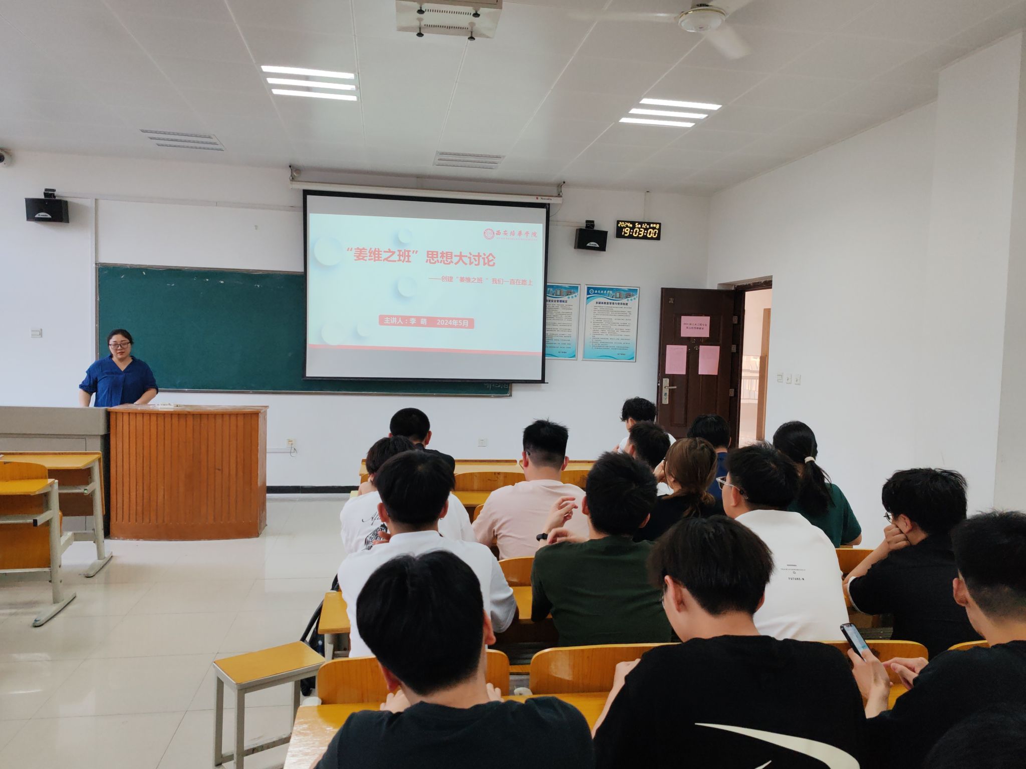 为进一步深化落实立德树人根本任务,推动“姜维之班”建设,我院开展了以“姜维之班”集中创建思想大讨论主题活动,本次活动面向学院全体学生,由辅导员老师组织学院97个班级开展“姜维之班”创建思想大讨论主题班会。此次讨论旨在进一步弘扬姜维之精神,推动学院学风建设,提升学生整体素养。