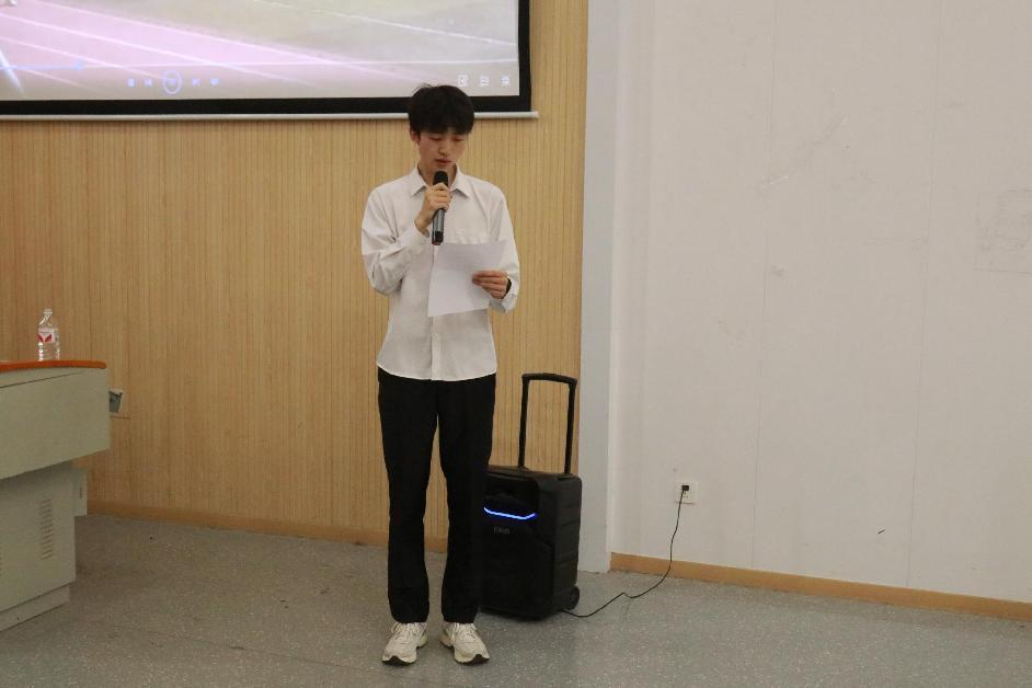 运动员代表王文东首先对学校和老师在日常学习生活以及训练中提供的帮助表示衷心感谢,并鼓励各位同学在接下来的生活中继续坚持锻炼,积蓄力量,以坚忍不拔的精神投入学习生活,为学院的建设发展添砖加瓦。