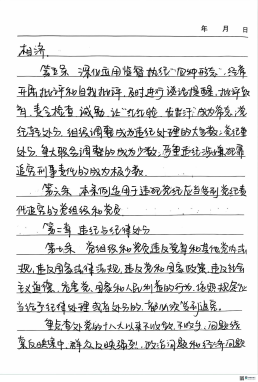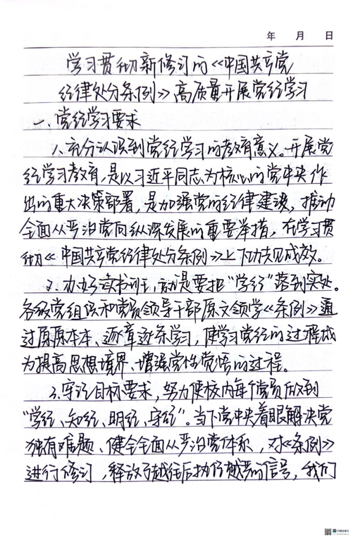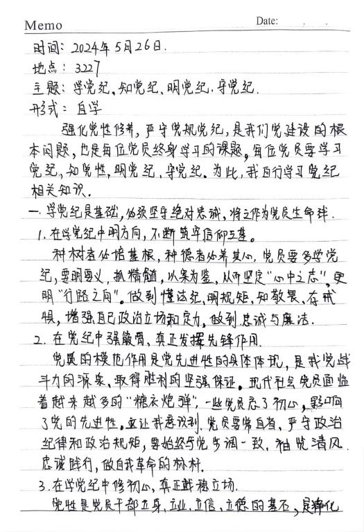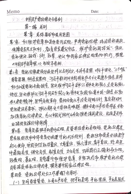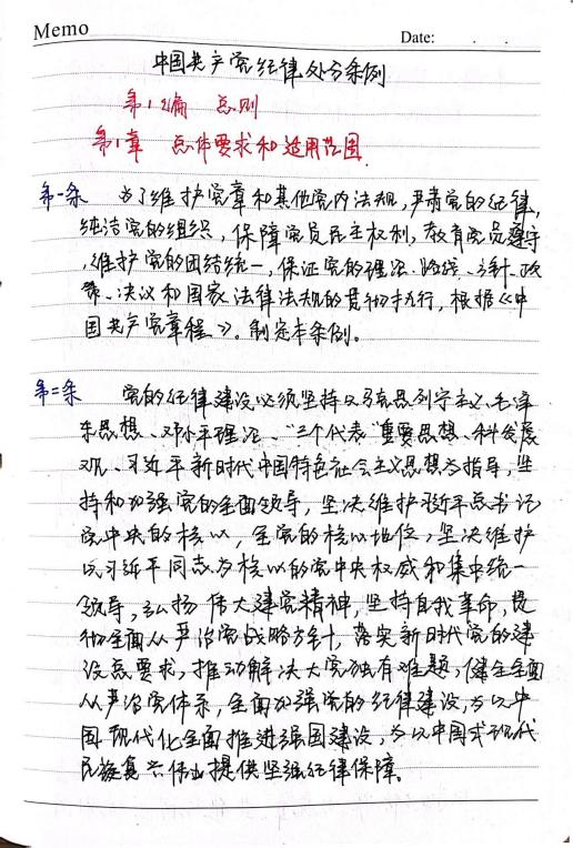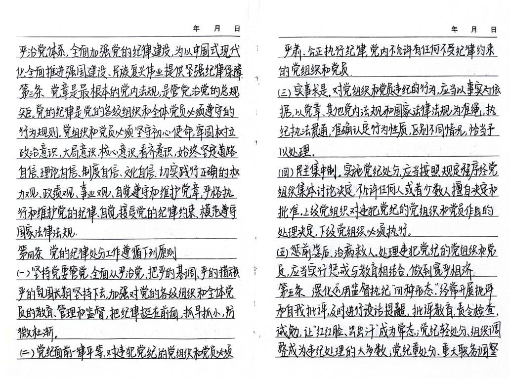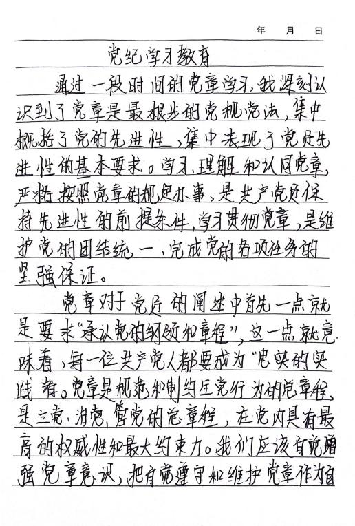 为深入开展党纪学习教育,使学习党纪的过程成为增强纪律意识、提高党性修养的过程,确保党纪学习教育全覆盖,我院党委结合学院党建特色品牌“七个一”教育实践活动,决定在我院全体师生党员中开展“学党纪,开展一次党纪学习党员优秀笔记评选”活动。