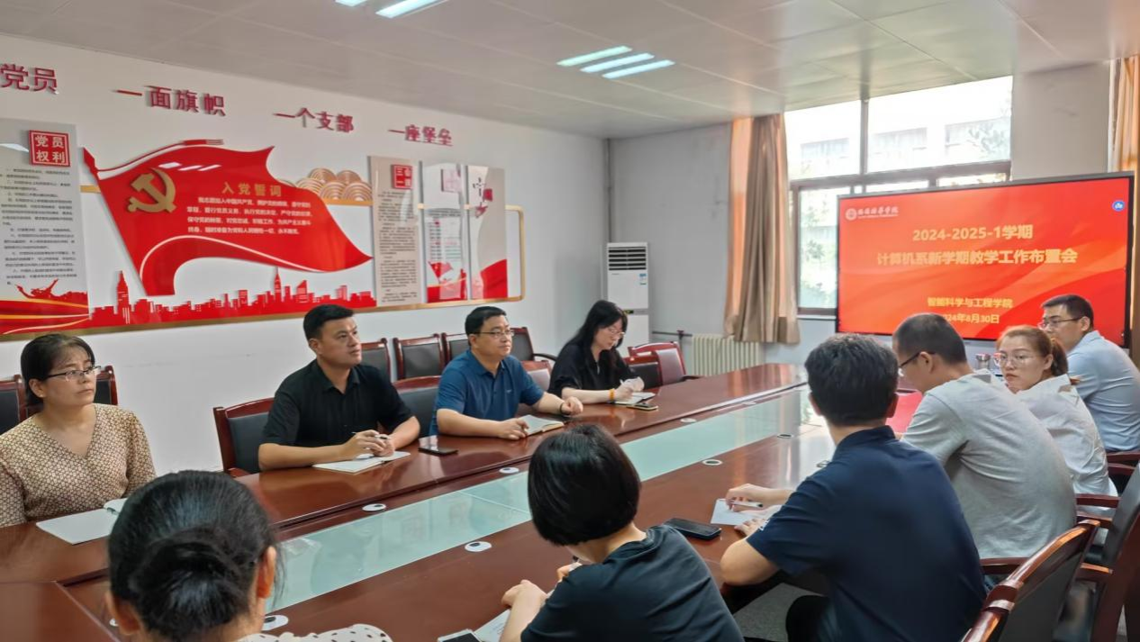 为高效推动新学期的教学工作,并开展“弘扬践行教育家精神”学习活动,智能科学与工程学院计算机系于2024年8月30日在学院会议室召开了新学期教学工作布置会。会议由计算机系主任焦纯教授主持,计算机系全体教师参加了此次会议。