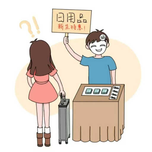 新生入学后,可能会遇到一些所谓的学长学姐来推销日用品,例如充电宝、网线等,这些东西大多是假冒伪劣产品,价格昂贵,而且没有售后。