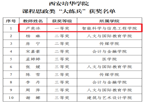 在进入西安培华学院的短短几年里,先后与电子信息工程、通信工程、软件工程、计算机科学与技术、数据科学与大数据技术各专业的同学们深入交流,学贵得师,亦贵得友。她积极参加各类教学比赛,曾获得西安培华学院课程思政类“大练兵”一等奖、第二届全国高校电子信息类专业课程实验教学案例设计竞赛西部赛区二等奖、全国三等奖。