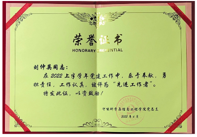 学生第一党支部党员刘仲英 计算机科学与技术专业学生