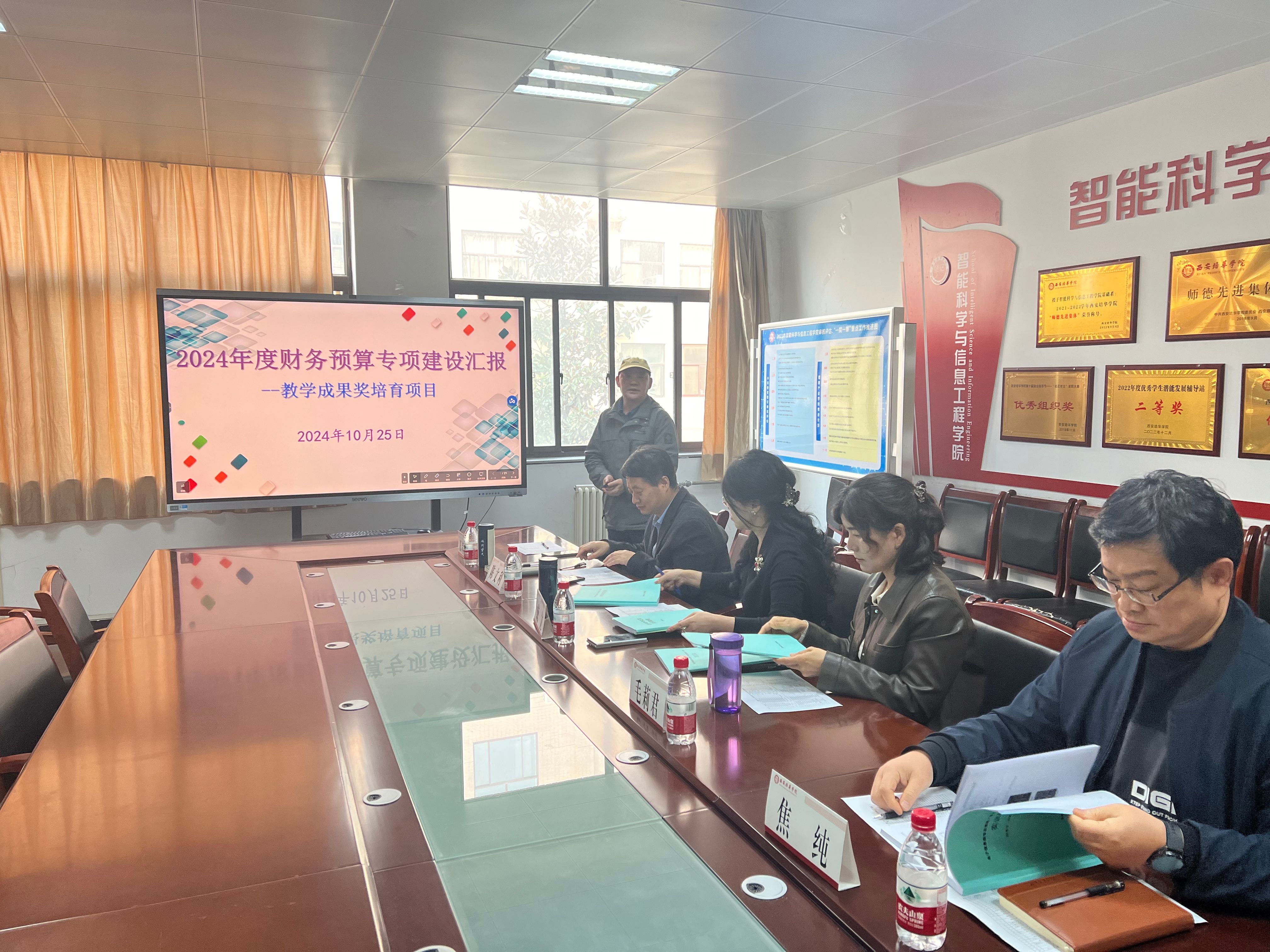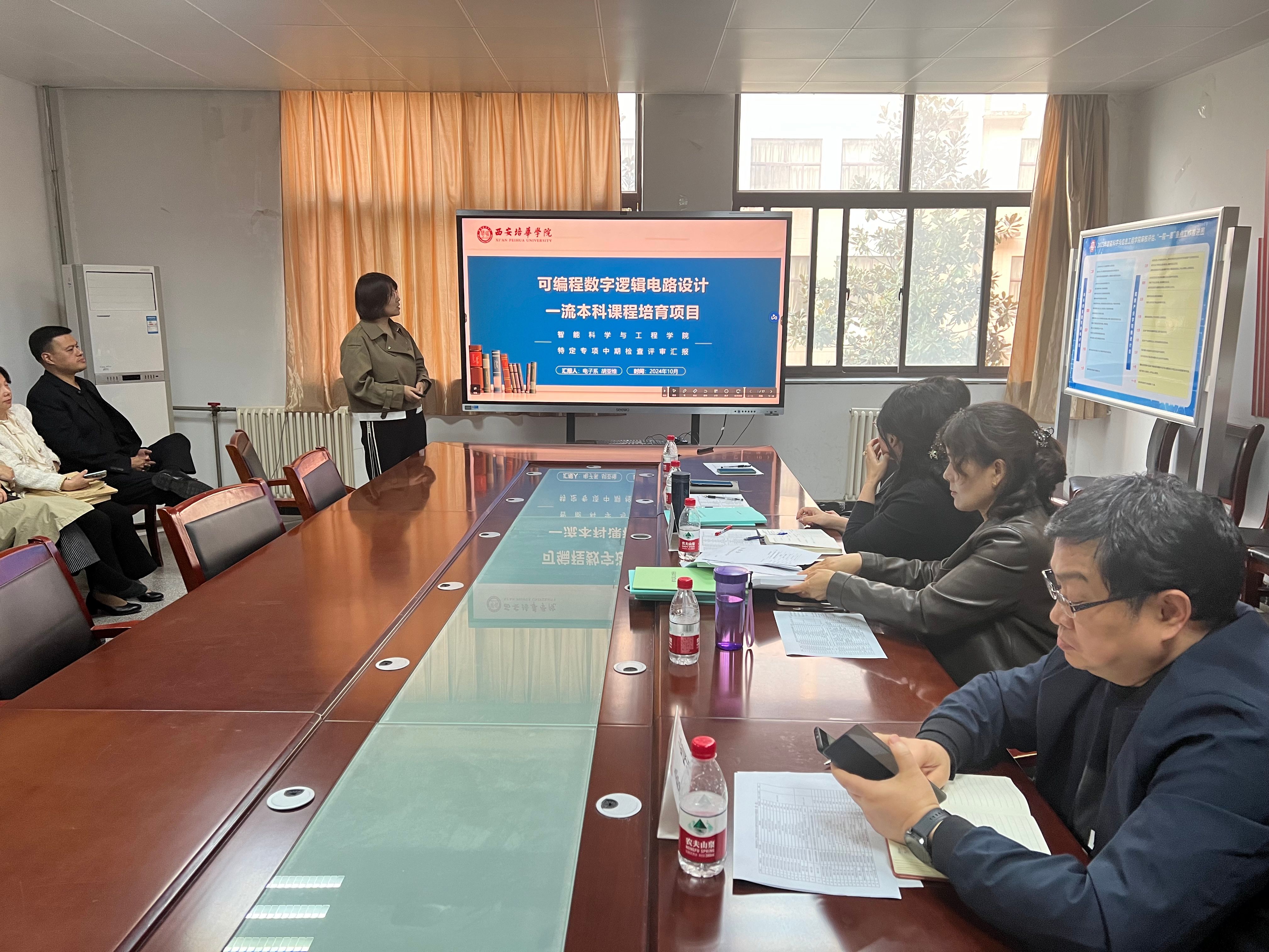 为推进学院教学培育类项目的有效实施,加强项目管理和监督,确保项目质量和进度,2024年10月25日下午,智能科学与工程学院开展第一批教学培育类项目中期检查,学院常务副院长成立、副院长毛莉君、院长助理陈文利、计算机系主任焦纯博士、通信工程专业带头人田孝华教授作为评委出席此次会议,会议由副院长毛莉君主持。
