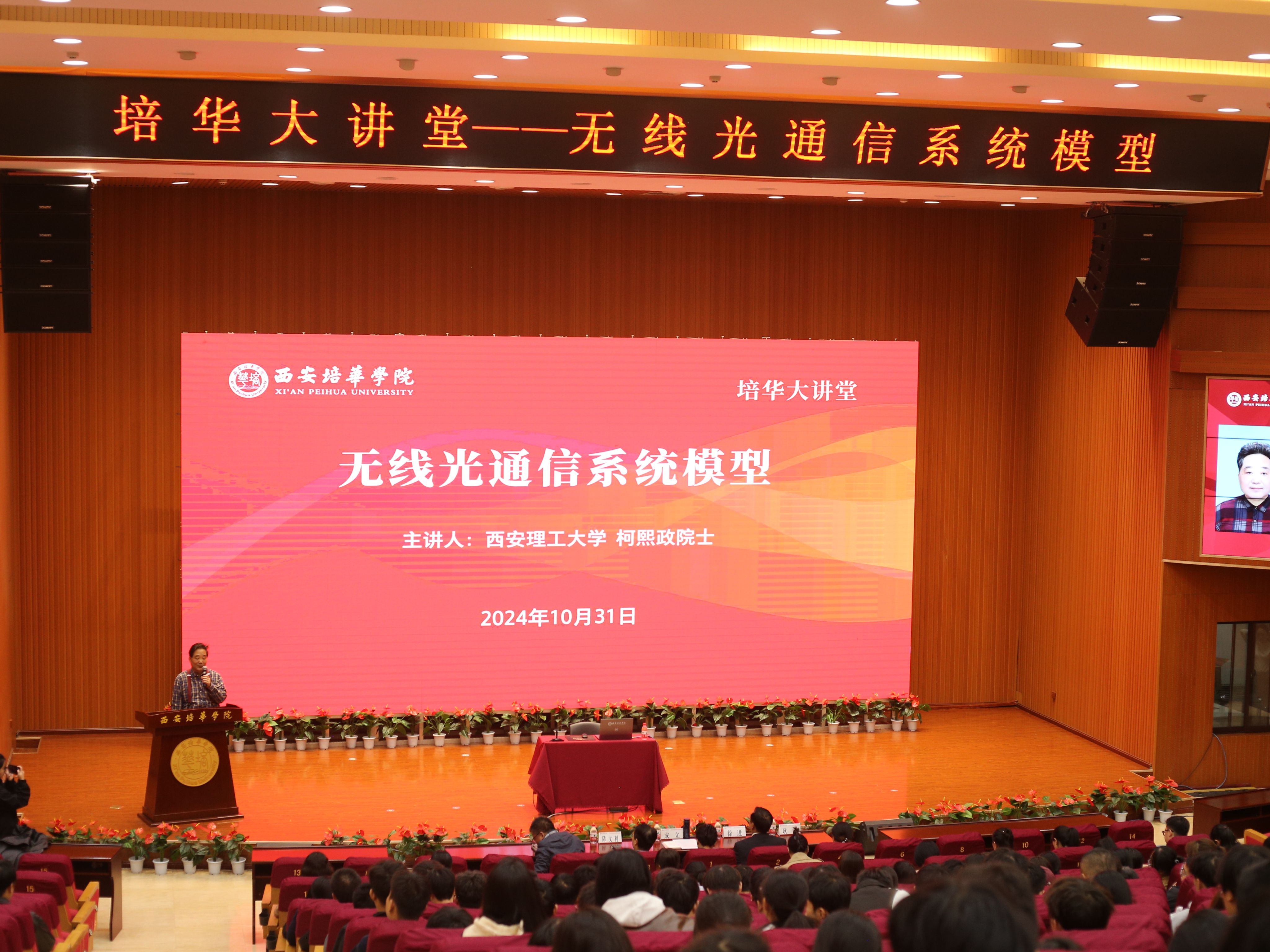 报告会上,柯熙政院士以其深厚的学术造诣和丰富的实践经验,向与会师生详细介绍了激光光源的选择与特性、信道编码的原理与方法、调制技术的种类与应用、光放大器的设计与性能、光学天线的功能与设计原则、APT(对准、跟踪、捕获)系统的工作原理以及空间光-光纤耦合技术等关键内容。