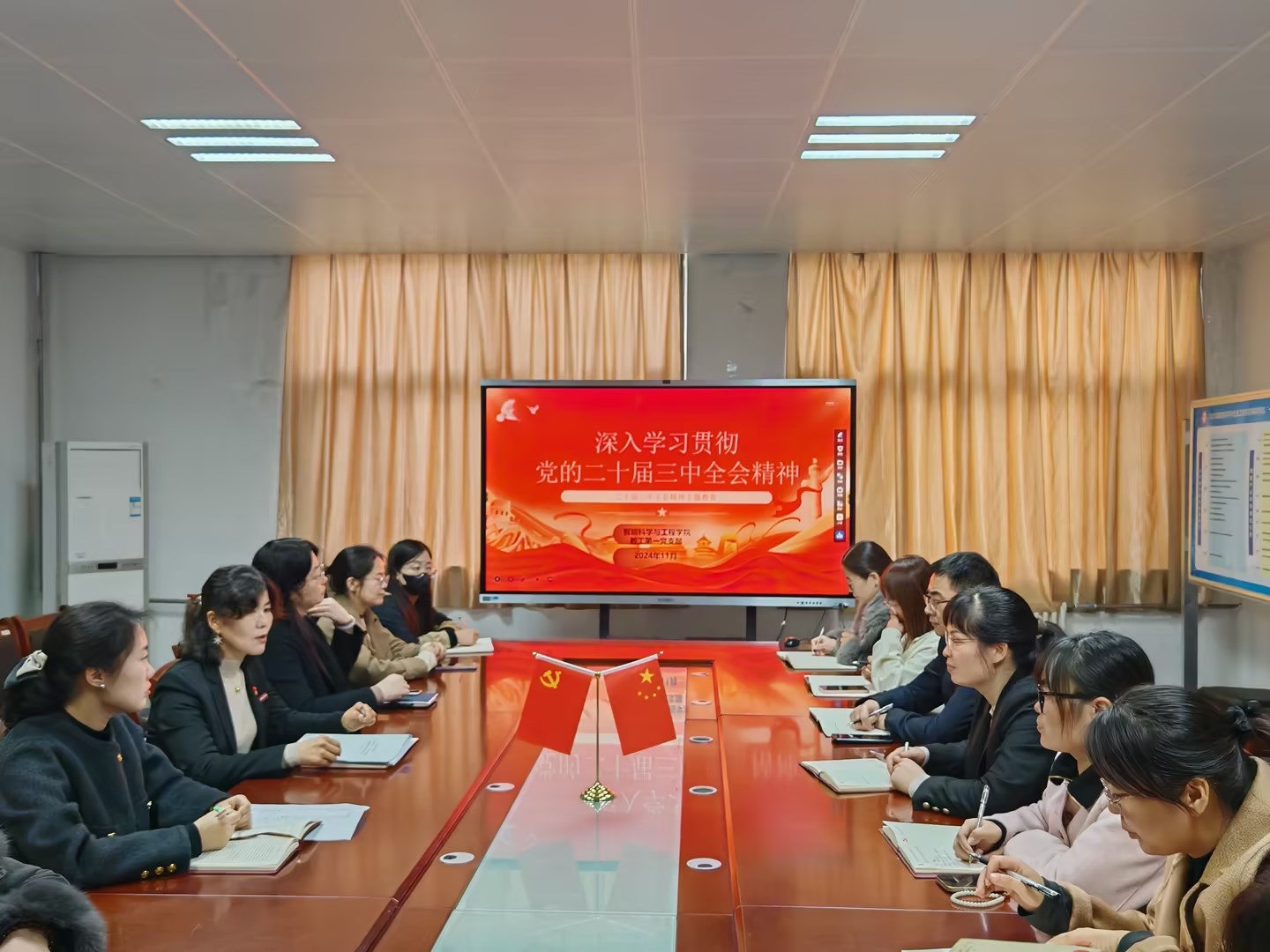 为深入学习贯彻党的二十届三中全会精神,进一步加强党员的思想建设和理论武装,凝聚思想共识,激发奋进力量,2024年11月11日,智能科学与工程学院教工第一支部开展了由支部书记毛莉君主讲的《深入学习贯彻党的二十届三中全会精神》专题党课学习活动。