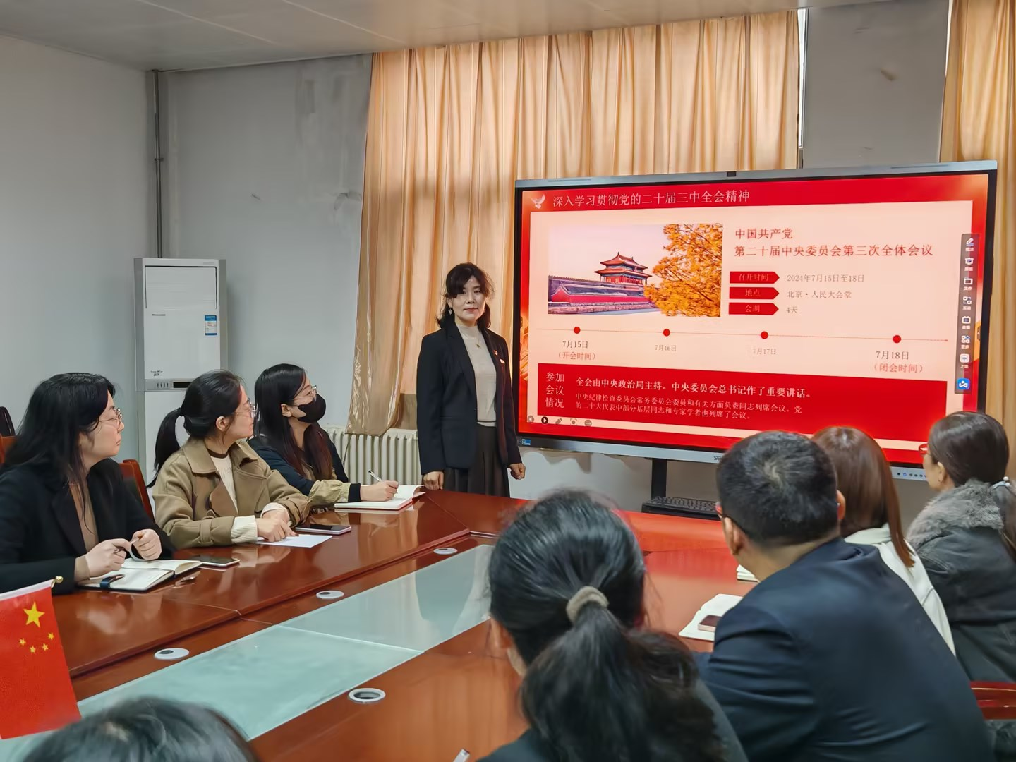 党课学习中,支部书记毛莉君首先介绍了党的二十届三中全会的召开背景、主要内容和重要意义。全会是在全面建设社会主义现代化国家新征程的关键时期召开的一次重要会议,对于进一步深化改革、推进中国式现代化具有重大而深远的意义。