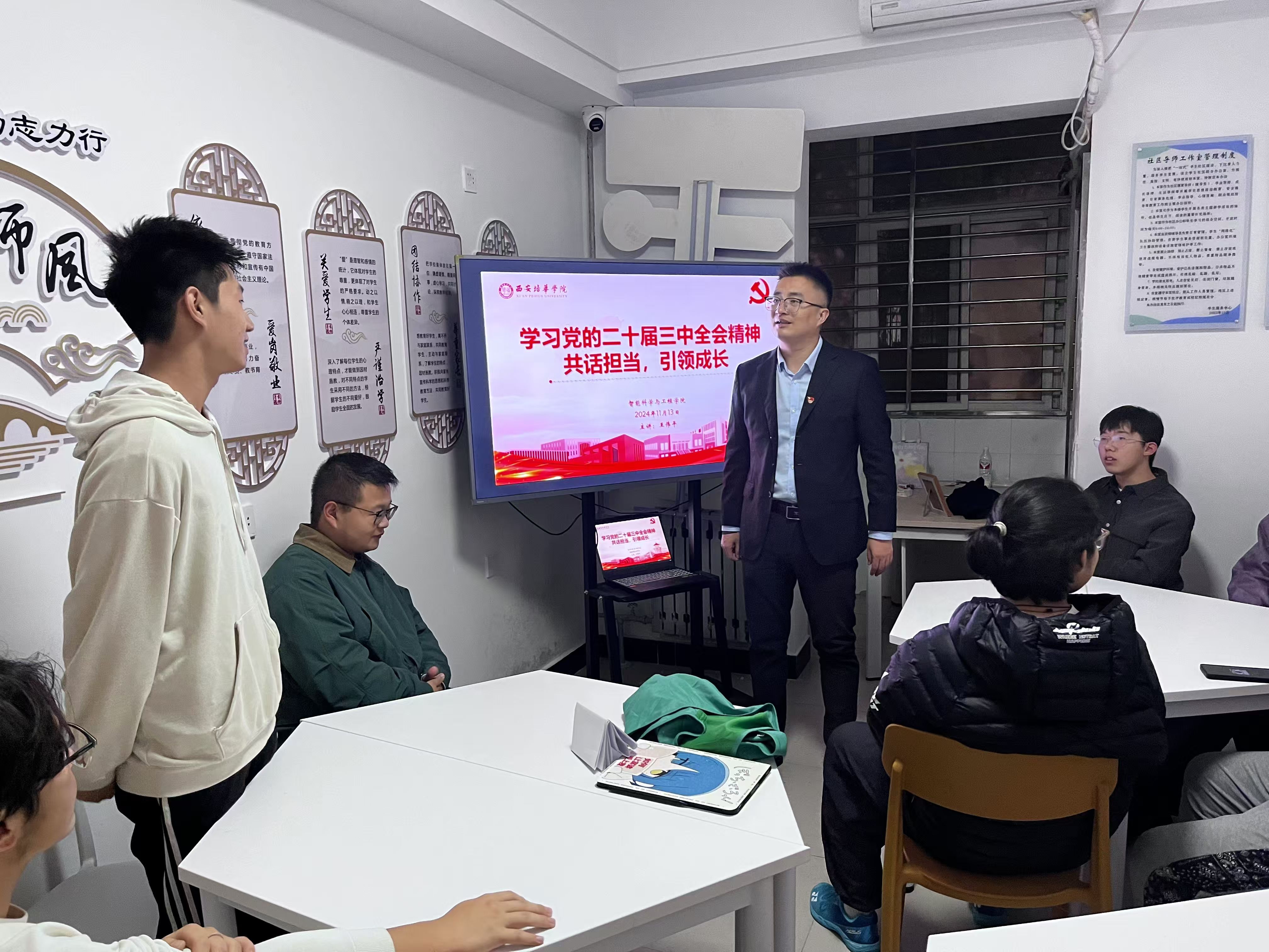 为深入学习党的二十届三中全会精神,加强学生党员干部培养,提高学生党员的党性修养,11月13日,智能科学与工程学院党委副书记王伟平老师在格物社区18公寓党员活动室开展“学习党的二十届三中全会精神”主题党课,格物社区18公寓学生党员干部代表参加。