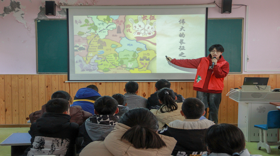 智“芯”先锋队宣讲人闵肃晨通过小视频带领学生身临其境,深入了解到长征精神的经过,以一系列丰富的史料和生动的故事,讲述了红军长征的历史背景和主要成果以及其精神力量,激发学生的爱国热情,增强民族自信心和自豪感