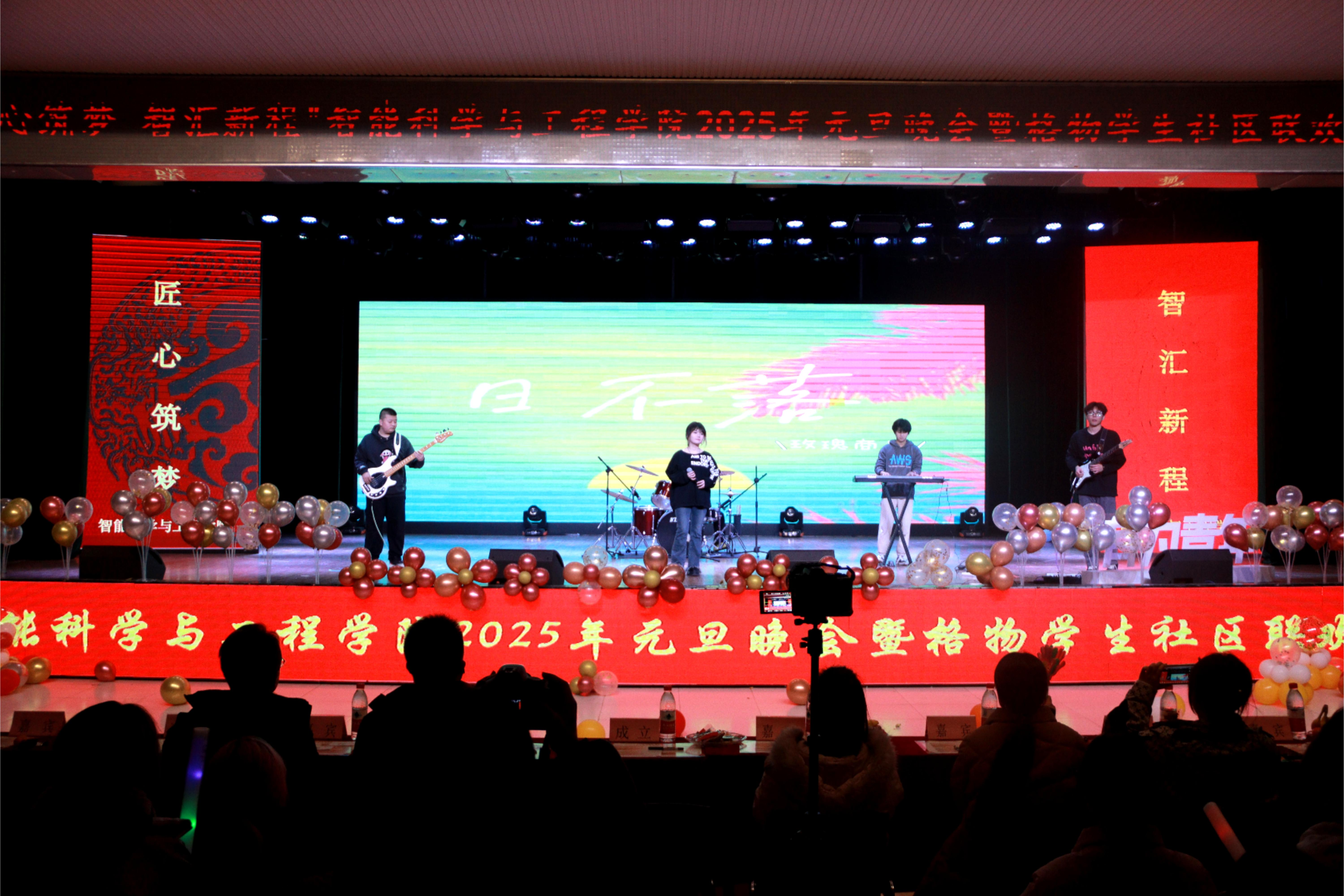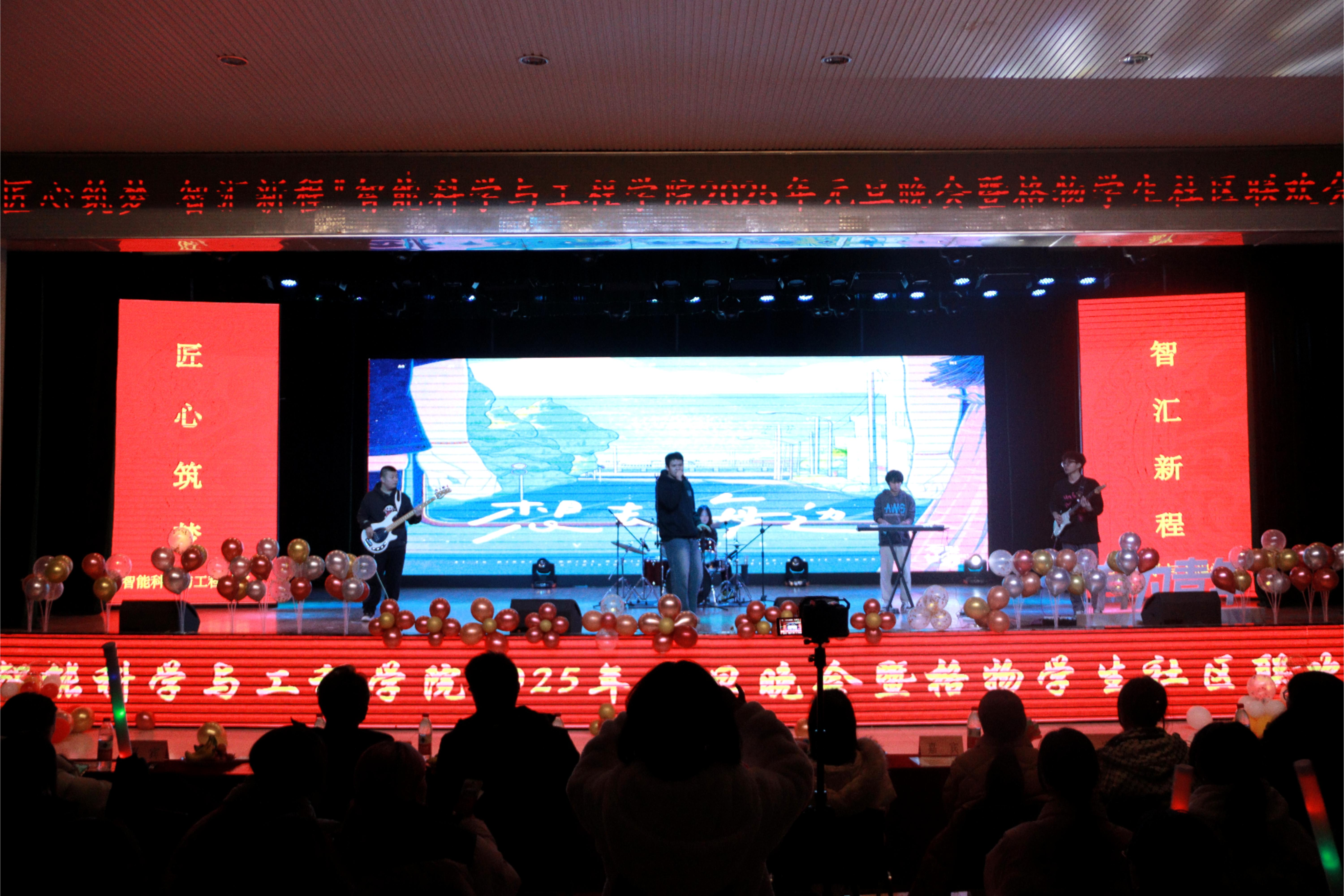 2024年12月23日晚,智能科学与工程学院在大学生活动中心中举办了2024—2025年“匠心筑梦•智汇新程”元旦晚会。出席今天晚会的领导和嘉宾有智能科学与工程学院常务副院长成立、党委副书记王伟平、团委书记仵怡欣、团委副书记吕文静、学生干事杨桂锋、学生干事黄鑫、学生干事高珊珊、教师代表以及全体辅导员老师, 本场晚会由杜雨洲、张可心、张钰涵、高梓轩、陶思梦、闵肃晨六位同学主持,我们在此迎接新年的曙光,书写新年的憧憬。