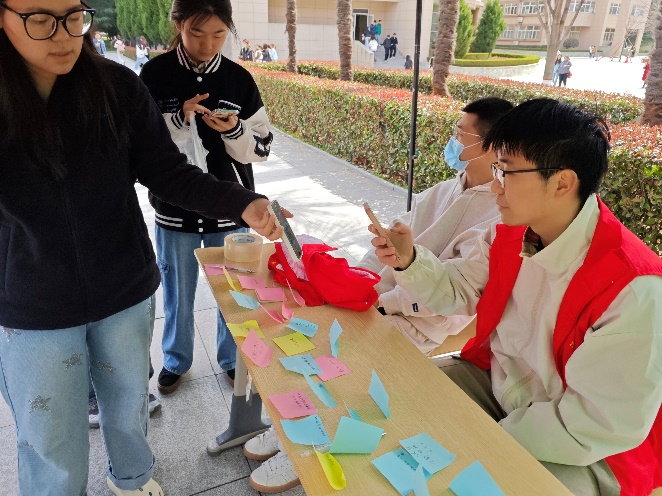 同学们积极参与,纷纷在便签纸上写下了自己参与过的雷锋志愿活动,每一张便签纸都承载着大家的爱心。