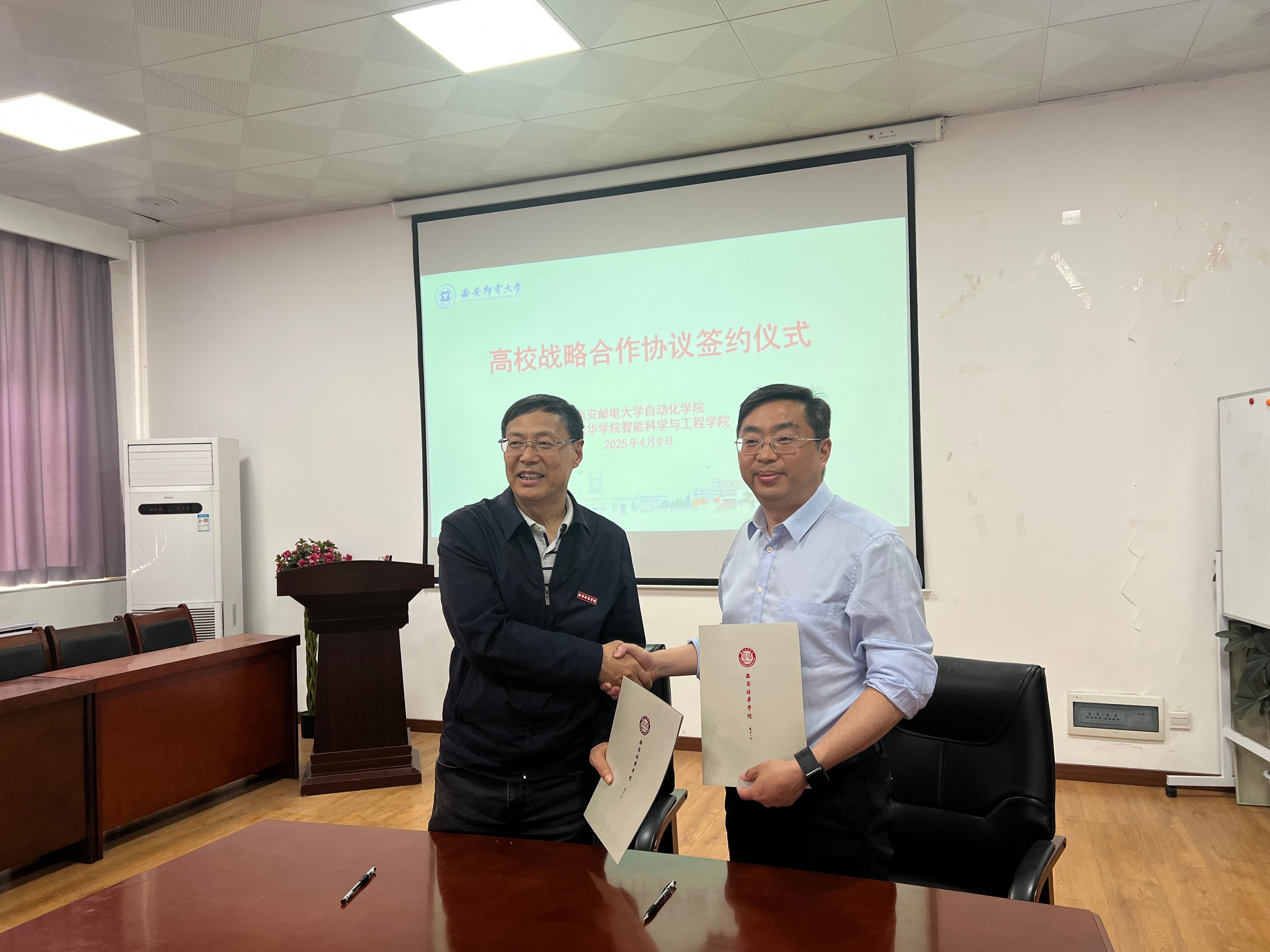 在友好而热烈的氛围中,西安邮电大学自动化学院院长赵峰教授和西安培华学院智能科学与工程学院院长王文庆教授代表双方签署了战略合作协议。协议的签署标志着两校在人才培养、科学研究、社会服务等方面的合作进入了一个新的阶段。