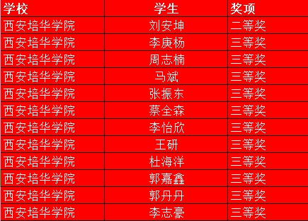 据悉,在第一届西北区域5G通信全网融合大赛中,西安培华学院荣获优秀组织奖,39名同学参赛共获奖13项,二等奖1项,三等奖12项获奖名单如下: