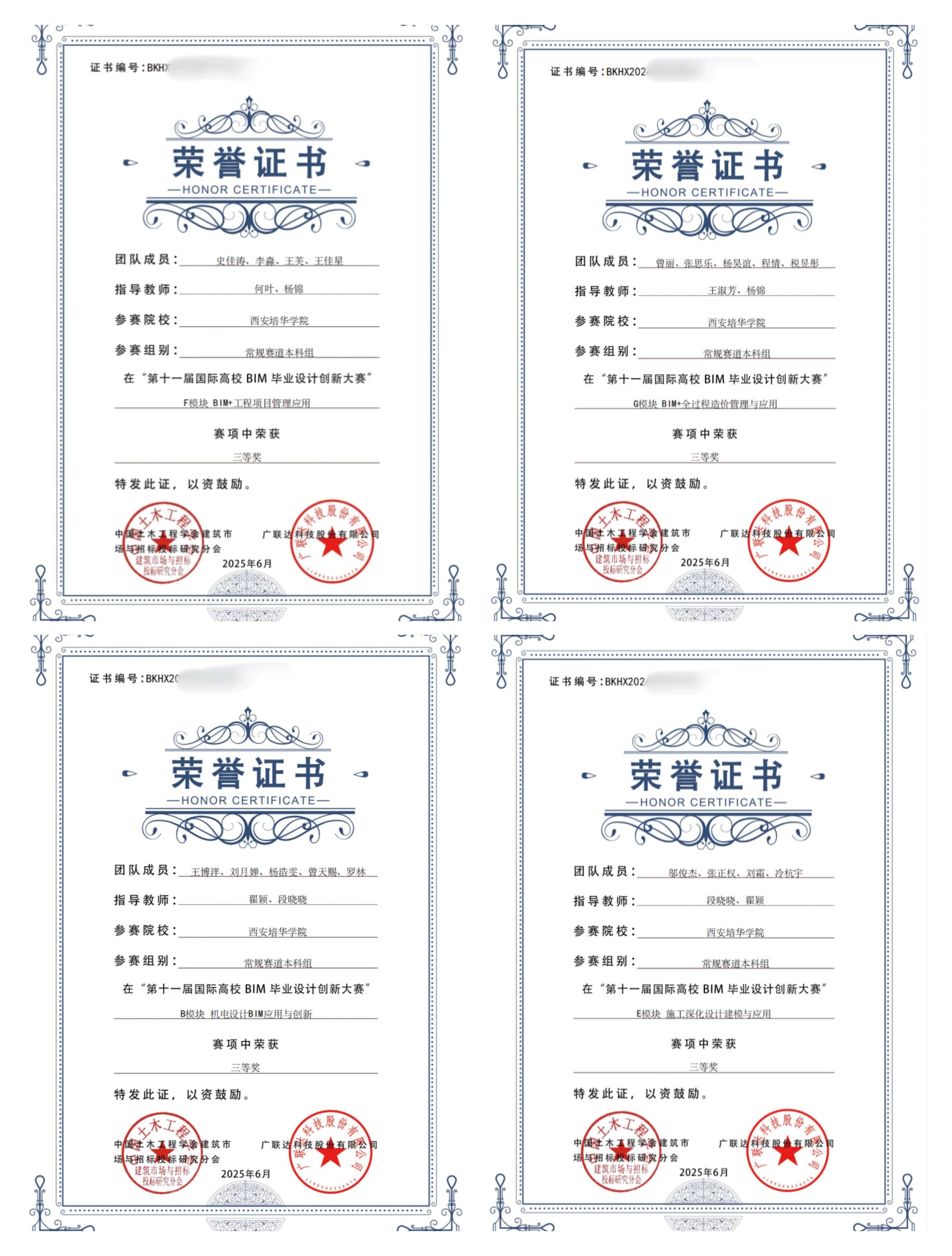 结合专业毕设研究方向,我院最终选定7个模块,组建工程造价及土木工程系15支队伍参赛。经过半年多的精心组织和指导,师生共同努力,取得多项成绩:团体三等奖8项、优秀奖3项。段晓晓、翟颖、宋胜男、赵冉、王淑芳、杨锦,何叶,杨燕,李丹9名教师获本次赛事的“优秀指导老师”荣誉称号。