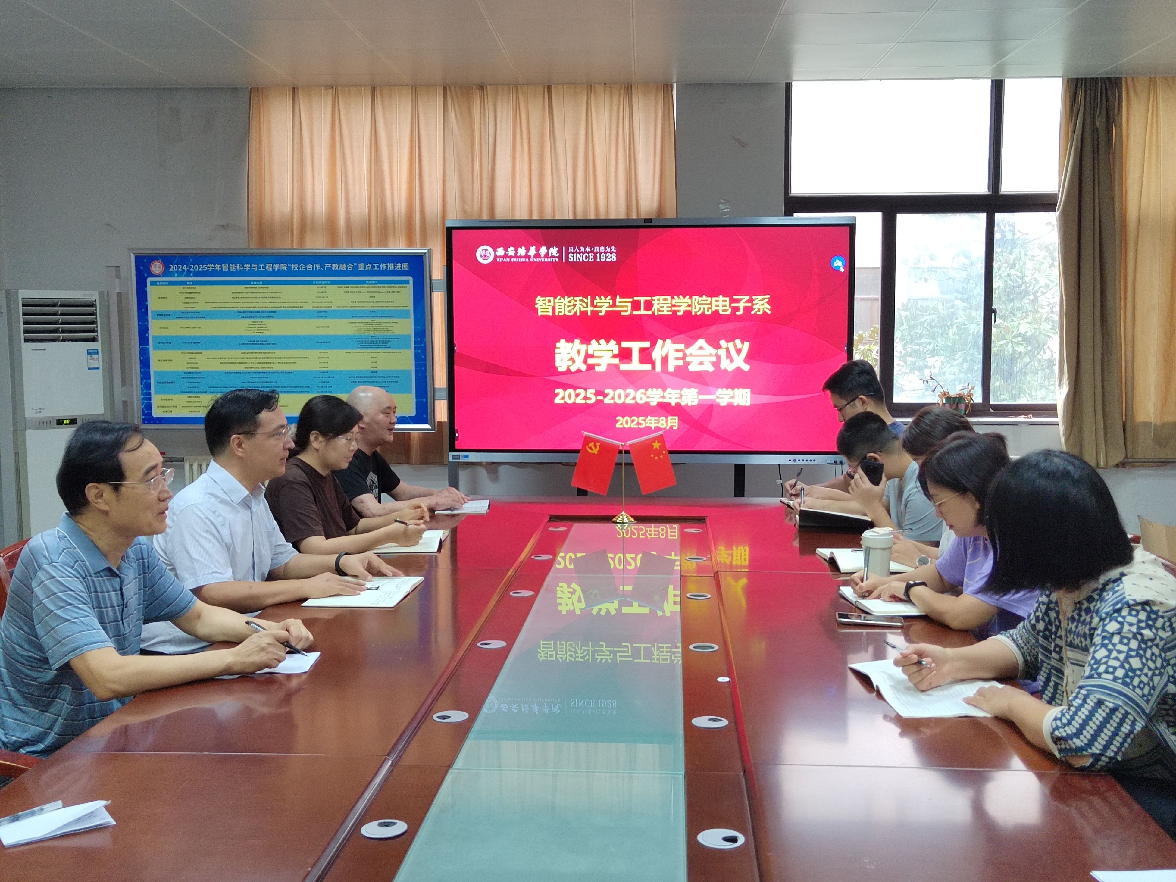 2025年8月25日,电子系在学院会议室召开2025-2026学年第一学期第一次教学工作会议。本次会议旨在全面总结暑期工作成果,分析当前教学科研形势,部署新学期重点任务,为新学期教学工作有序开展奠定坚实基础。电子系全体教师参会,会议由系主任徐进老师主持。