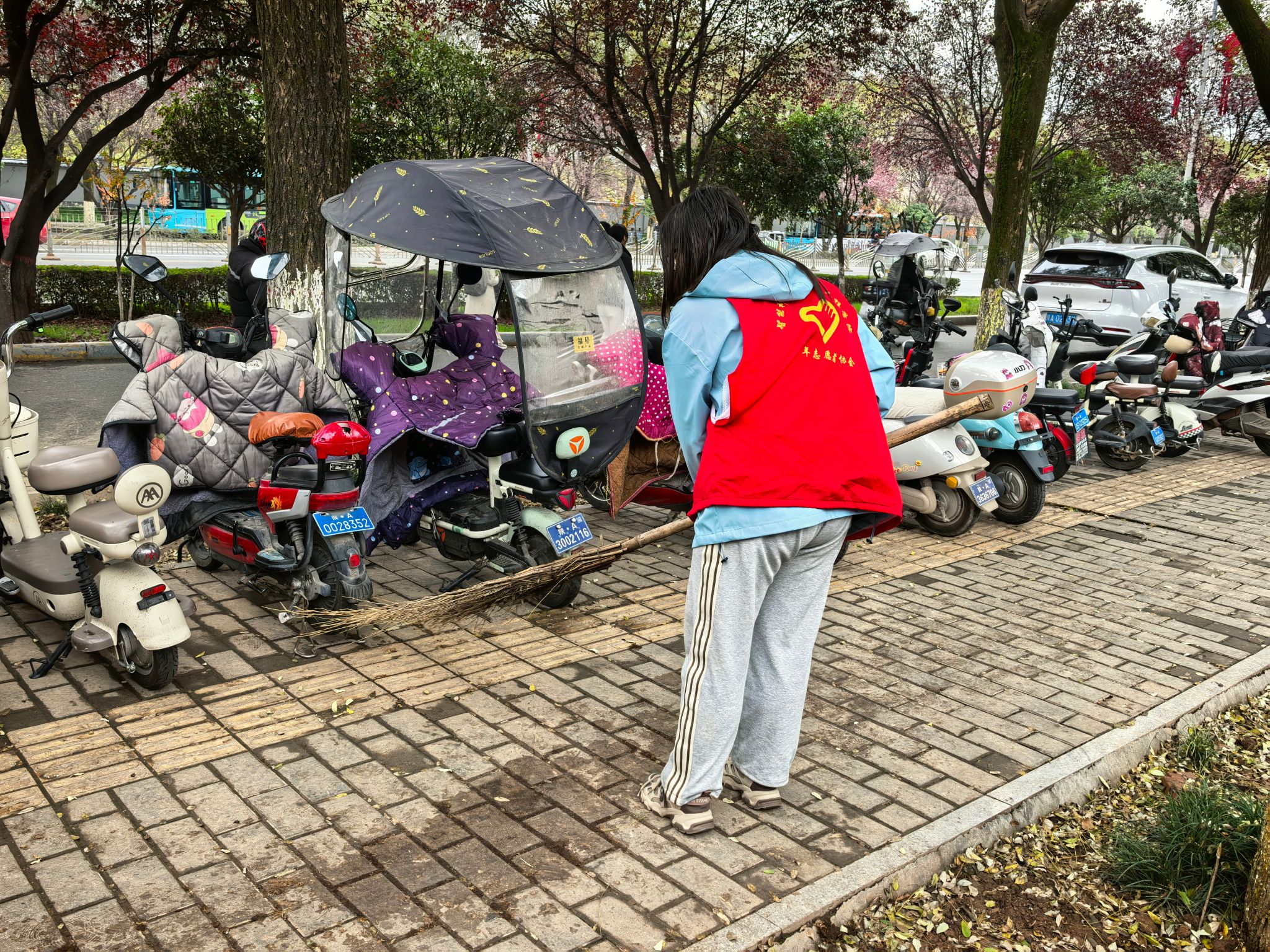 志愿活动现场,志愿者们按职能划分为 5个小组,其中 2个清洁组、3个秩序组。清洁组志愿者手持工具沿人行道细致清扫;秩序组则针对地铁口 “车辆扎堆、占道停放” 的问题展开整治,将斜停、跨线的共享单车逐一扶正,对未停进指定区域的电动车,合力将车辆挪移至附近的非机动车停车区。过程中,还有志愿者向过往市民讲解 “规范停车保障通行安全” 的重要性,不少市民主动表示 “以后会注意停在指定区域”。