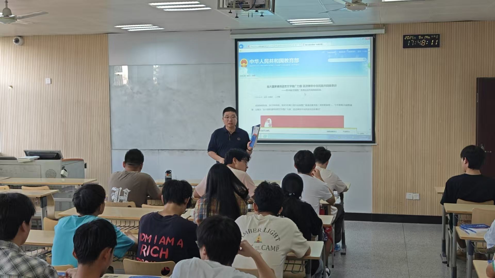 9月15日,西安培华学院智能科学与工程学院在各班级组织开展了“加大国家通用语言文字推广力度,促进铸牢中华民族共同体意识”主题班会。