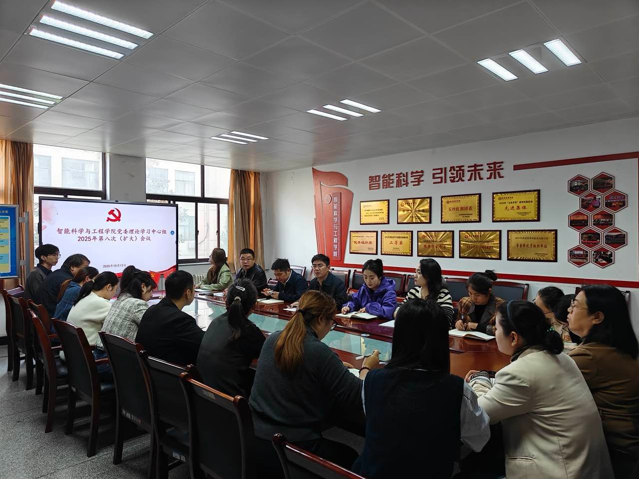 为深入学习贯彻习近平新时代中国特色社会主义思想,强化思想政治引领,提升党建工作质效,10月13日上午9:00,智能科学与工程学院党委理论学习中心组2025年第八次(扩大)会议在育英楼3204党员活动室召开。学院党委书记王林主持会议,党政领导班子成员、党委委员及各党支部书记、副书记参加会议。