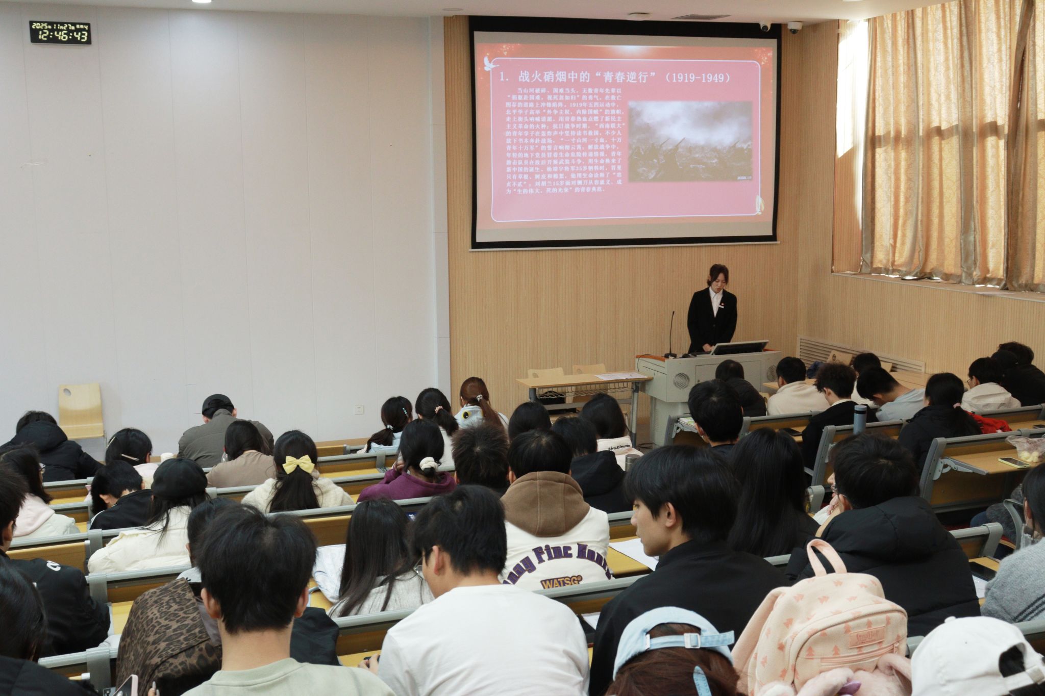 为厚植青年爱国情怀,传承先辈精神血脉,引导学子将个人理想融入民族复兴伟业,在时代浪潮中勇担使命、砥砺前行,智能科学与工程学院于3505教室举办团课第四讲活动。本次团课以“吾辈情深系华夏,初心不改向远方”和“山河无恙承先志,青春有为续华章”为主题,在思想的碰撞与精神的洗礼中,为青年学子点亮理想之灯、注入奋进之力,让爱国初心在青春岁月中愈发坚定。