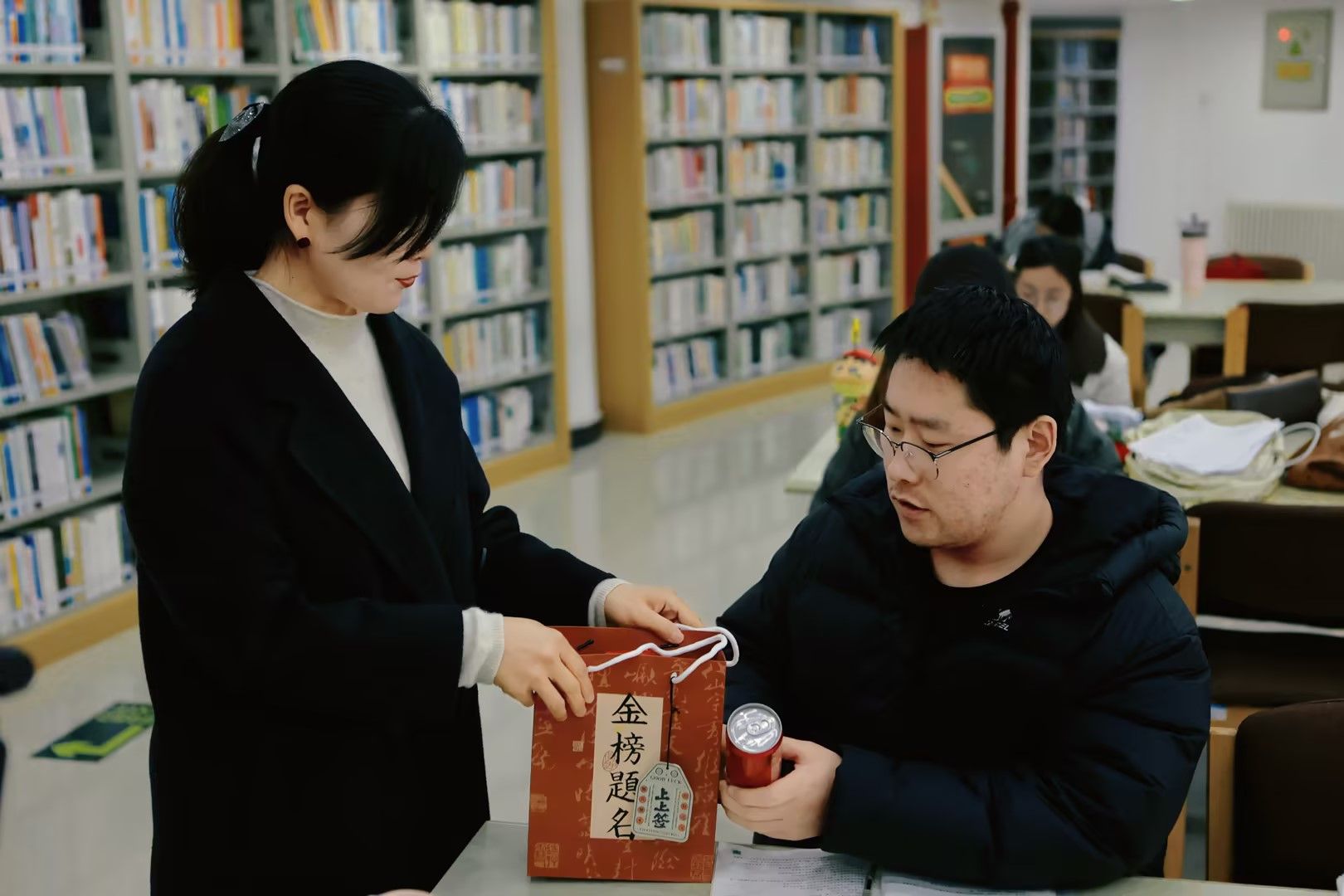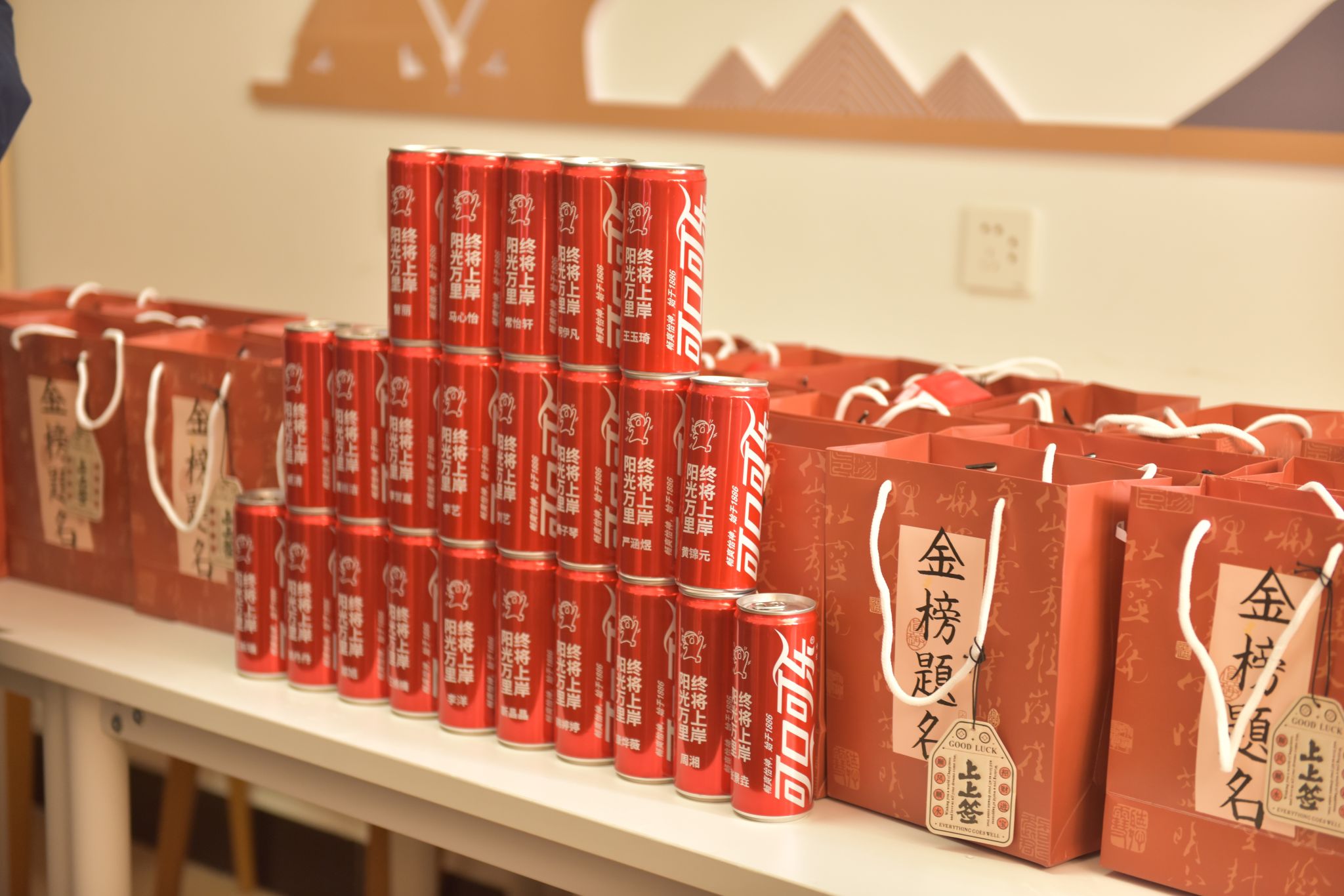 学院精心筹备了寓意美好的慰问礼包,每一份礼物都承载着对学子的深切期许:专属名字的“阳光万里 终将上岸”祝福同学,愿同学们所求皆如愿;实用的精美文具套装是备考与应考的得力助手,寓意 “妙笔生花”,助力学子在考场上挥洒自如;红色的杯子与巧克力,期许同学们一路好运相伴,稳稳上岸。