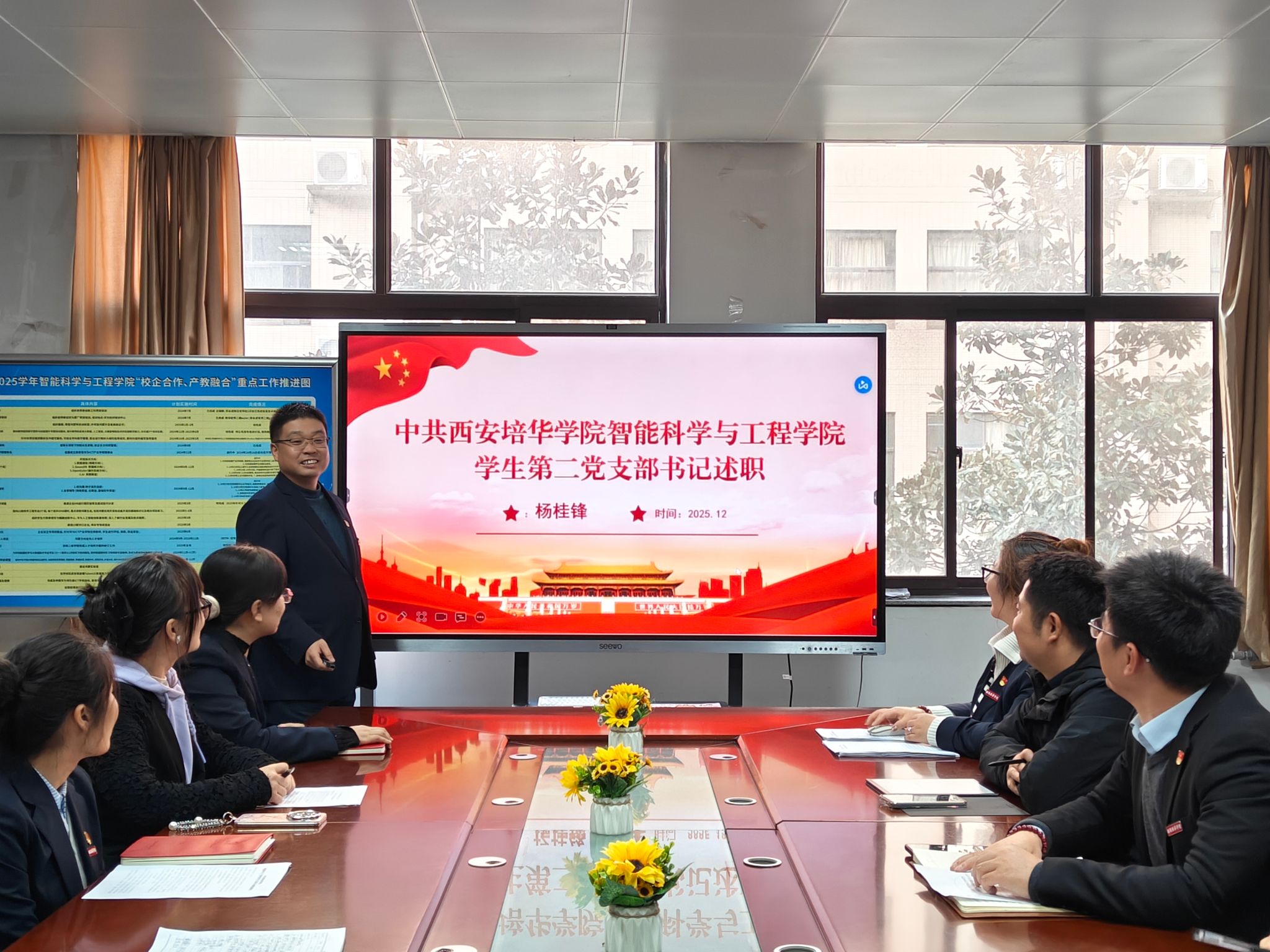 2025年12月16日,学院党委根据《中共西安培华学院委员会2025年度基层党组织党建工作目标考核办法》,智能科学与工程学院党委召开党支部书记2025年党建工作述职会。本次述职会以党委扩大会的形式举行,学院党委书记王林、副书记屈松林、各基层党支部书记及委员、专、兼职党务干事等参加,述职会由学院党委书记王林同志主持。