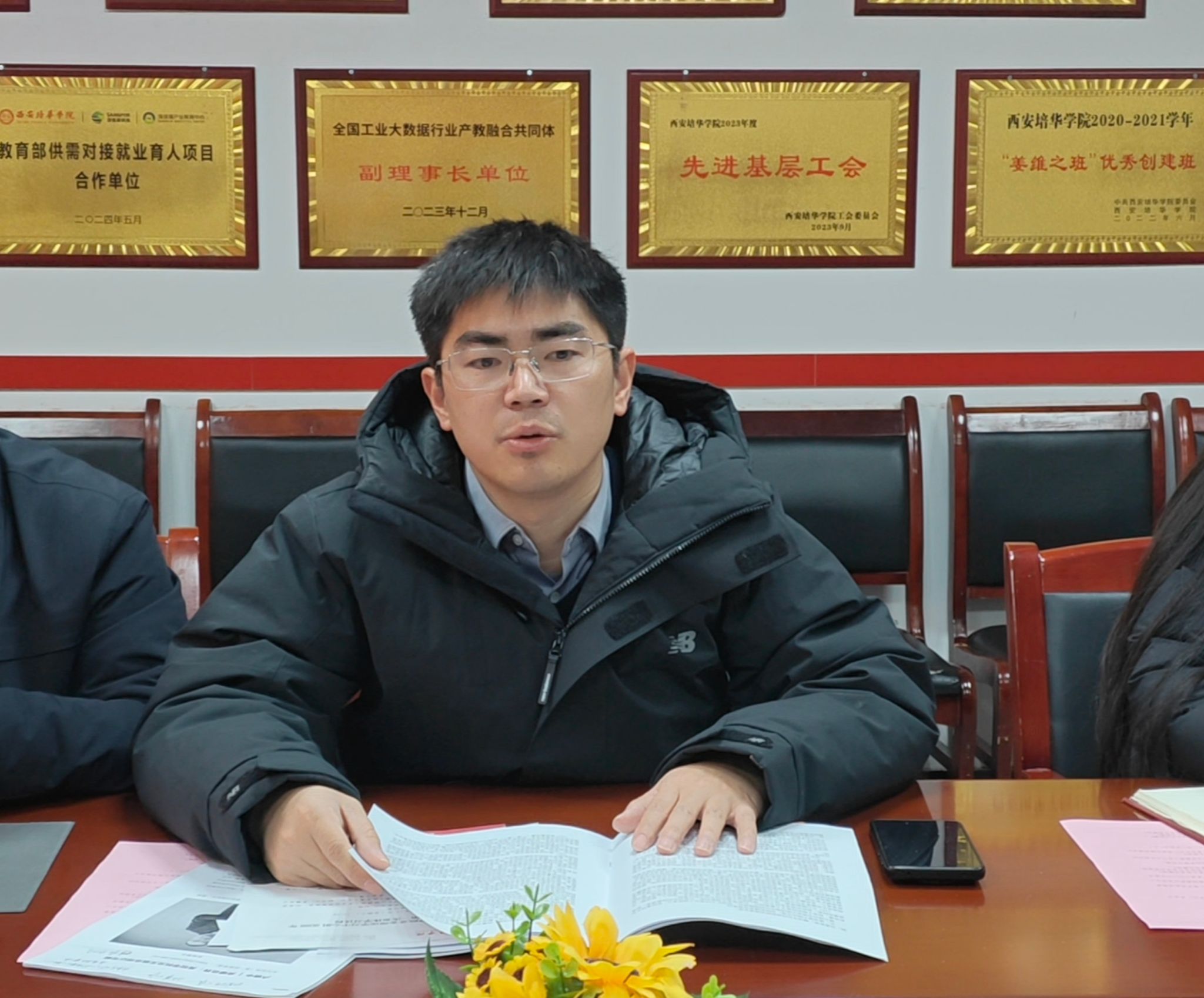为深入学习贯彻习近平新时代中国特色社会主义思想和上级重要会议精神,强化理论武装,凝聚发展共识,1月19日上午,智能科学与工程学院党委理论学习中心组在党员活动室召开2026年第一次(扩大)会议。学院党委书记王林主持会议,党委理论学习中心组成员、各党支部书记、党务干事及全体辅导员参加会议。