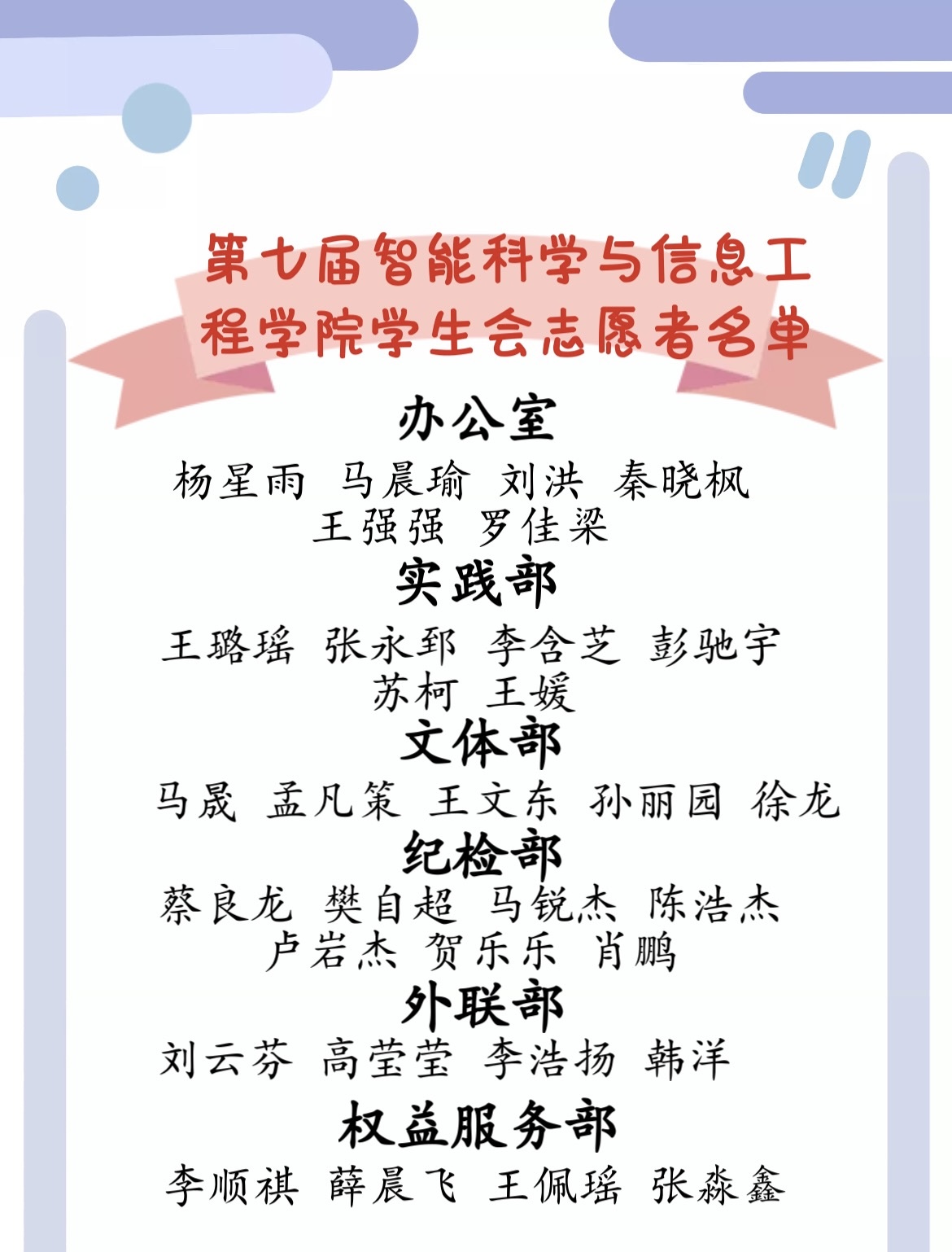 2021届智能科学与信息工程学院第七届学生会志愿者名单